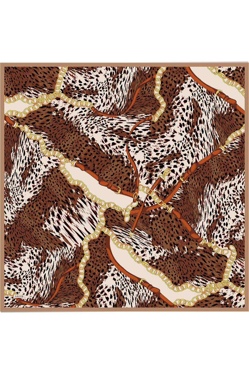 Geometrik Desenli 90X90 İpek Krep Saten Eşarp