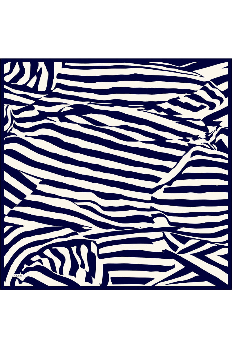 Lacivert Zebra Desenli İpek Krep Saten Eşarp