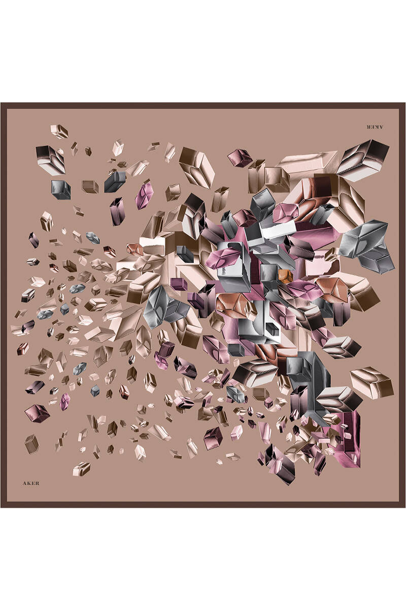 Geometrik Desenli 90X90 İpek Krep Saten Eşarp