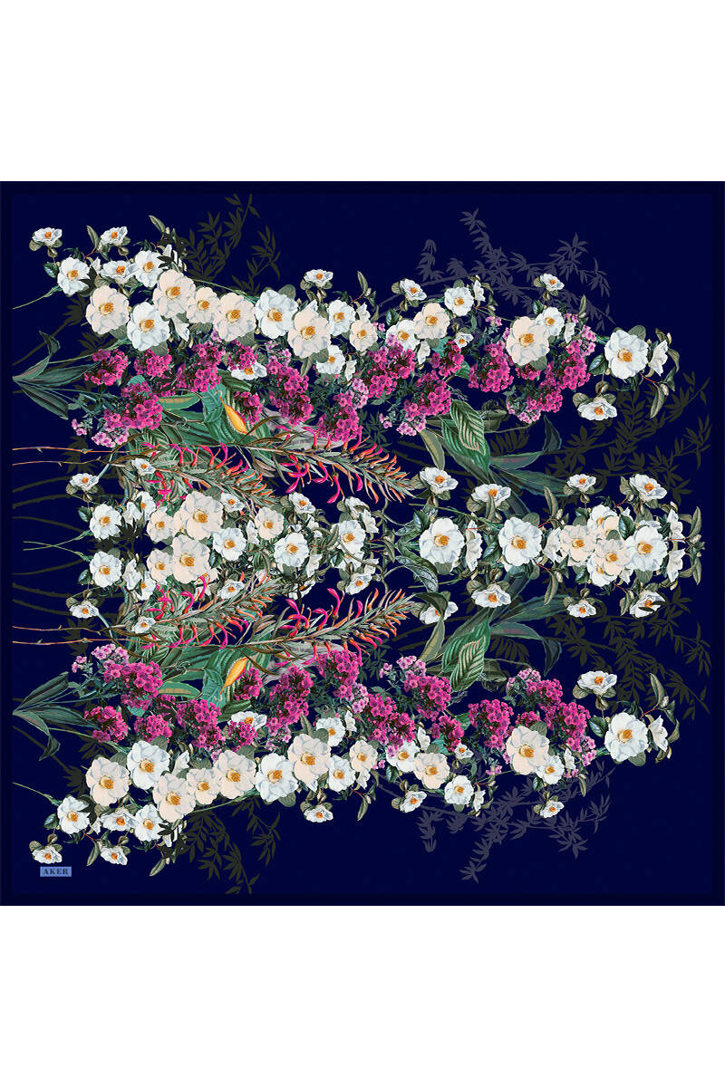 Çiçek Desenli 90X90 İpek Krep Saten Eşarp