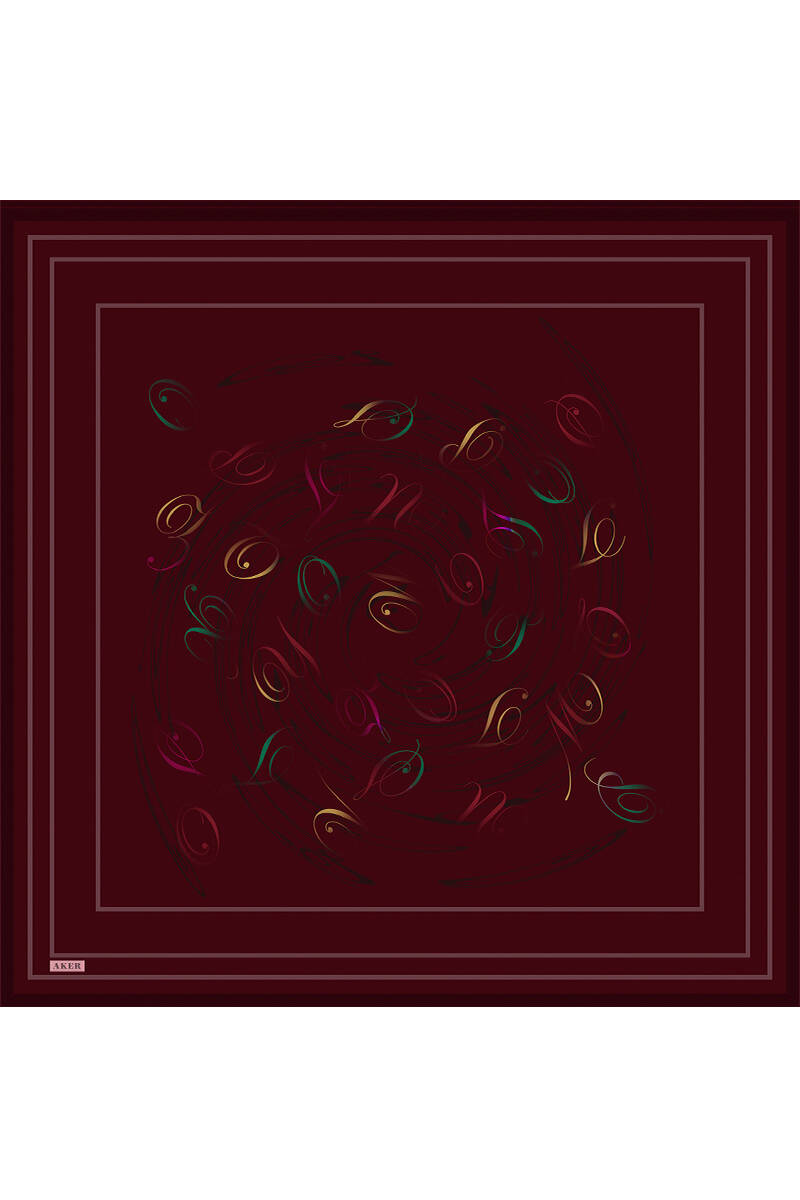 Logo Desenli 90X90 İpek Krep Saten Eşarp