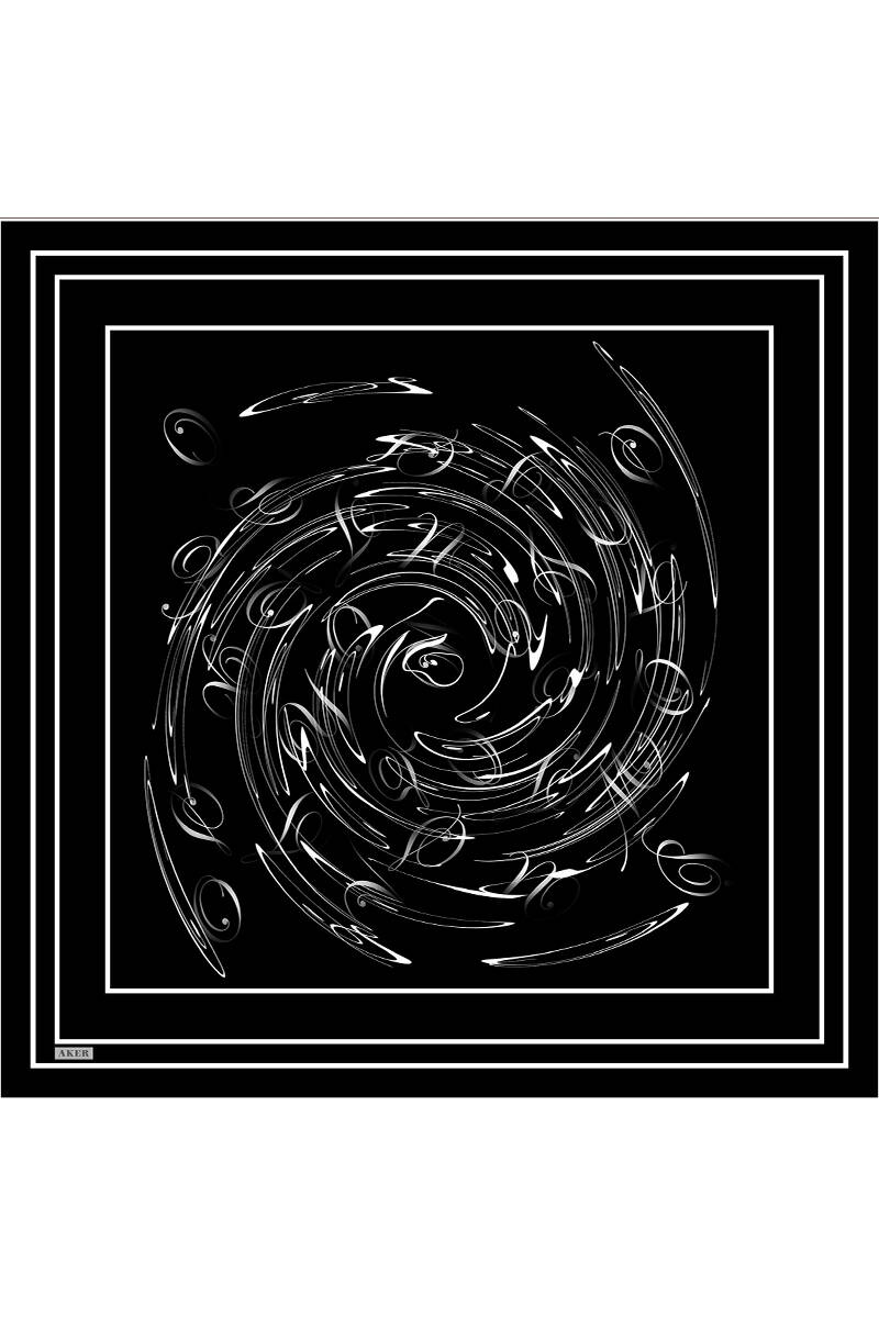 Siyah Fırça Desenli İpek Krep Saten Eşarp