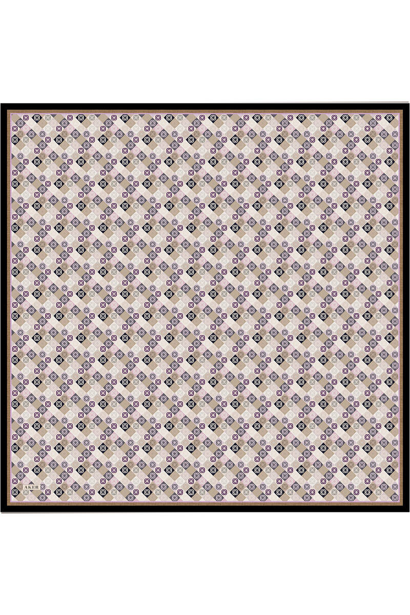 Geometrik Desenli 90X90 İpek Krep Saten Eşarp