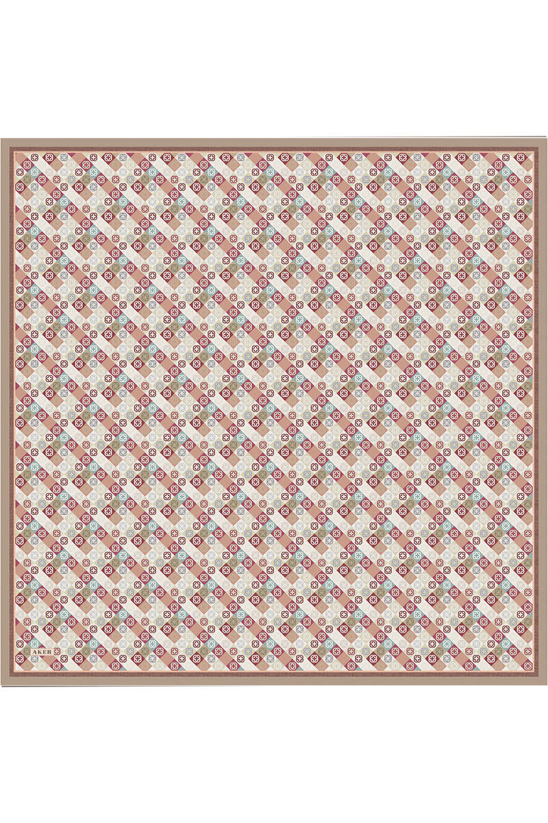 Geometrik Desenli 90X90 İpek Krep Saten Eşarp