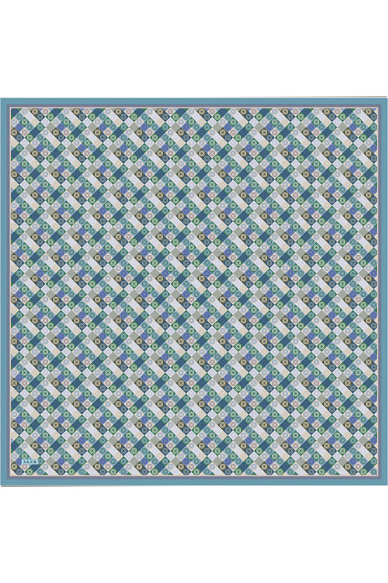 Geometrik Desenli 90X90 İpek Krep Saten Eşarp
