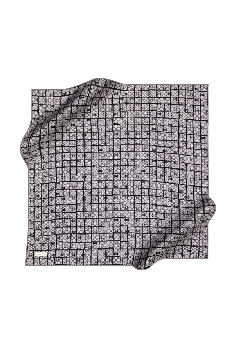 Logo Desenli 90X90 İpek Krep Saten Eşarp