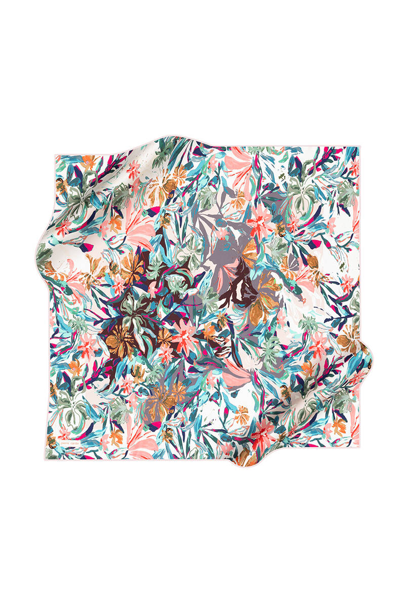 Çiçek Desenli İpek Krep Saten Eşarp