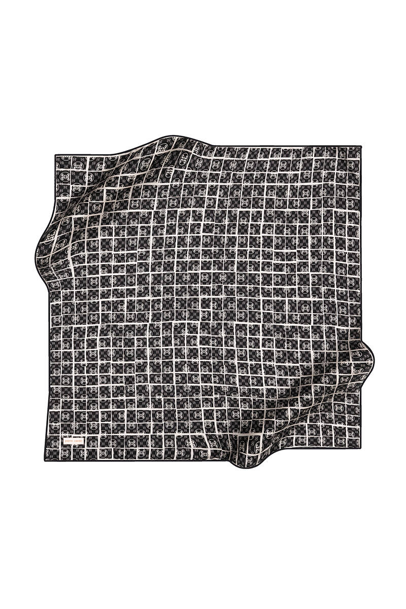 Logo Desenli 90X90 İpek Krep Saten Eşarp