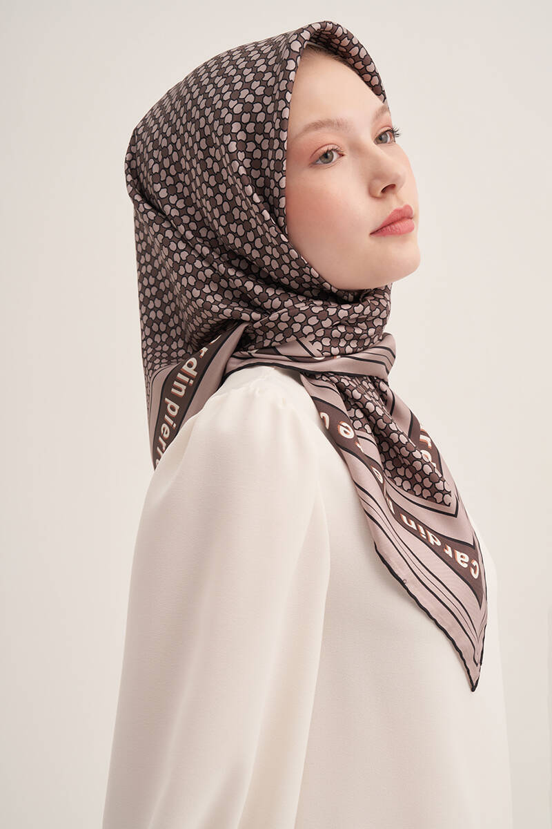 Fırça Desenli 90X90 İpek Krep Saten Eşarp