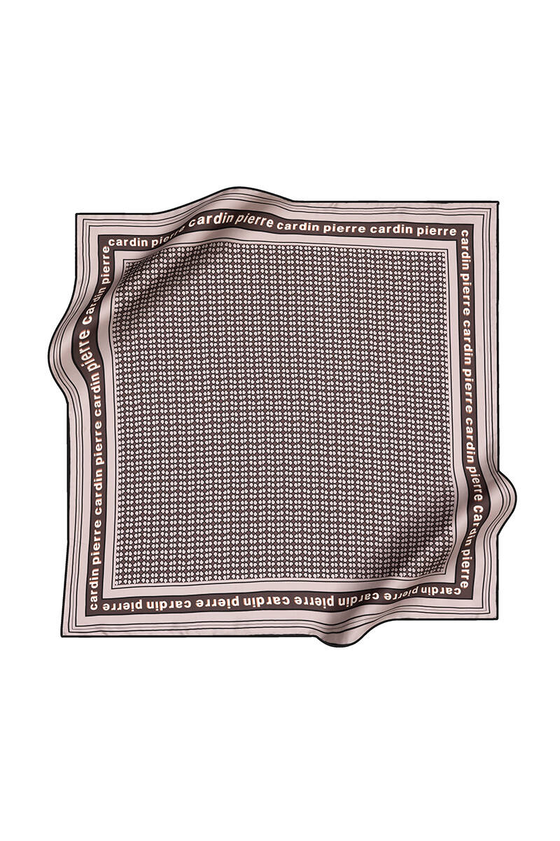 Logo Desenli 90X90 İpek Krep Saten Eşarp