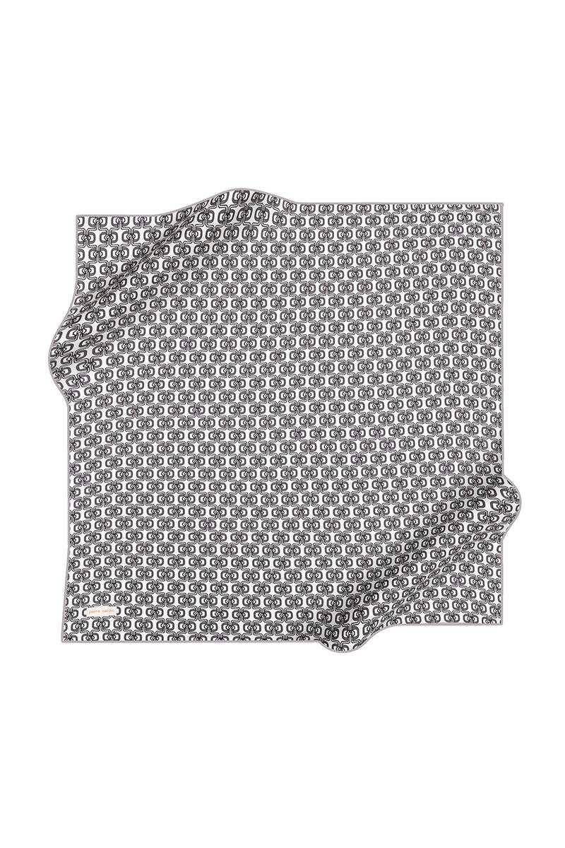 Logo Desenli 90X90 İpek Krep Saten Eşarp
