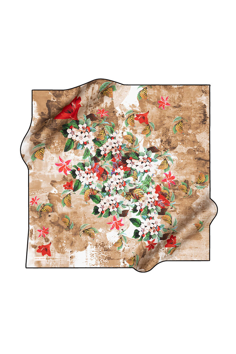 Çiçek Desenli Pierre Cardin Krep Saten Eşarp