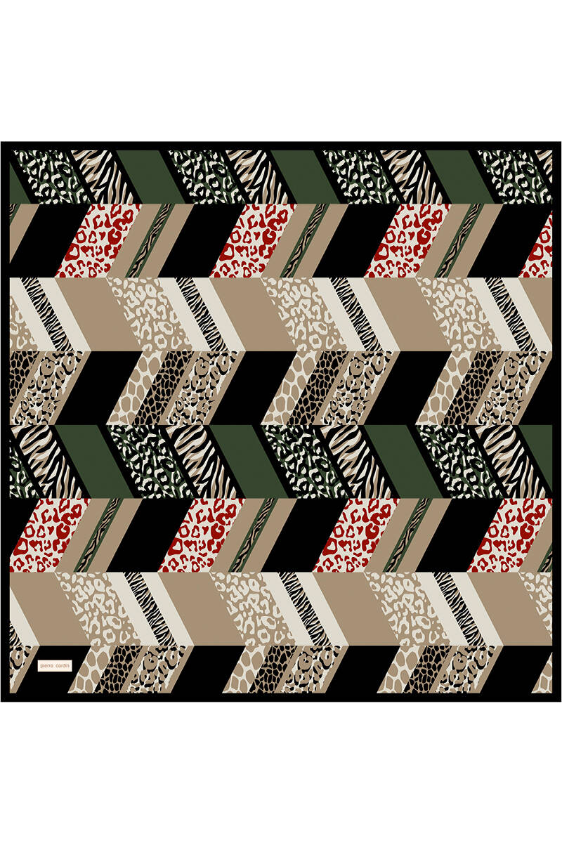 Geometrik Desenli 90X90 Pierre Cardin Krep Saten Eşarp