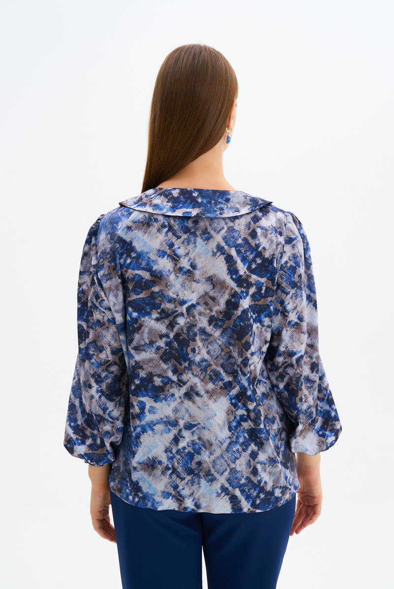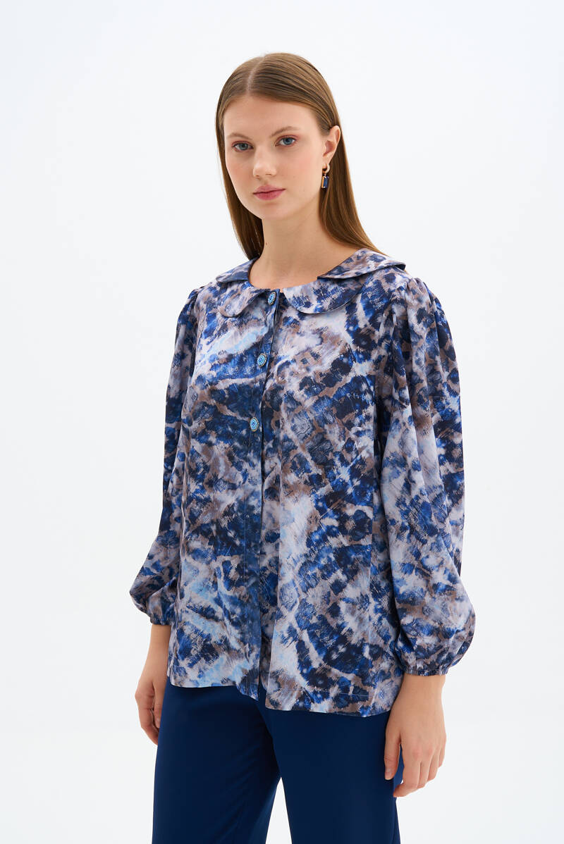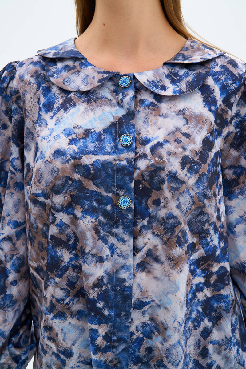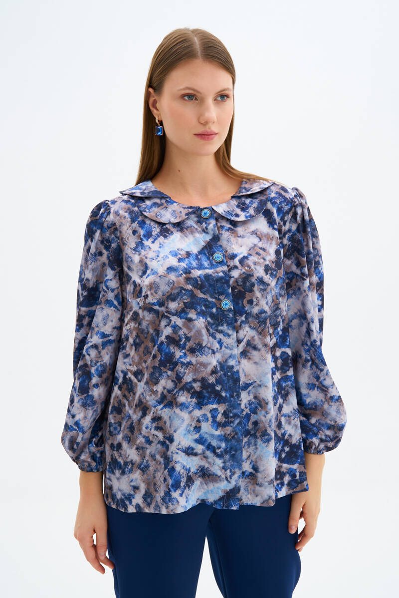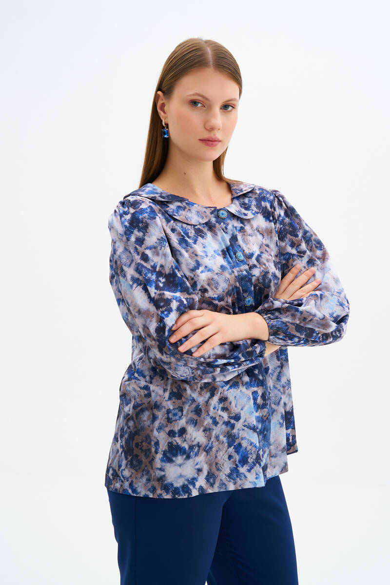 Antrasit Yaka İşlemeli Çizgili Bluz