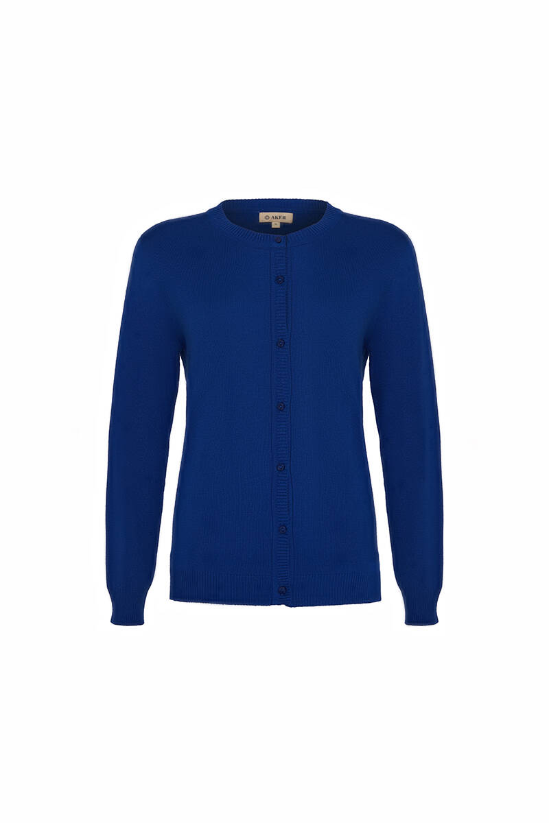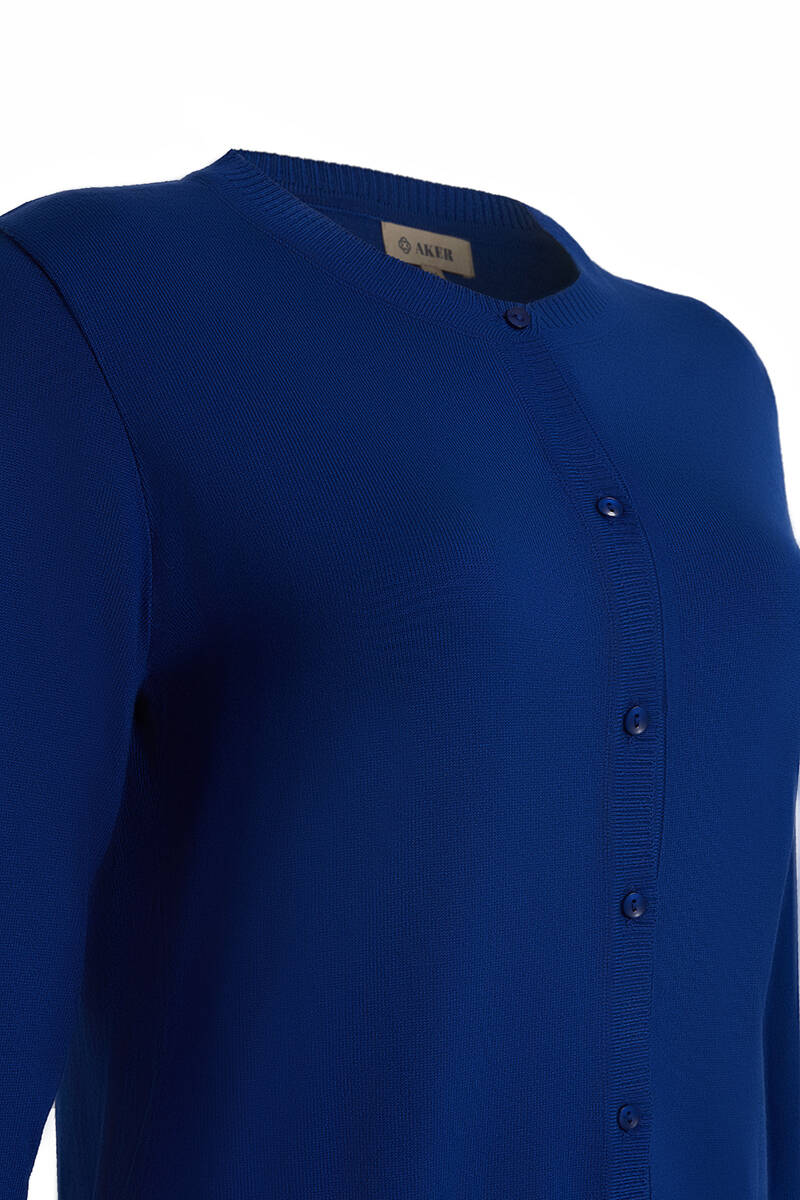 Lacivert Cepleri İşleme Detaylı Örme Uzun Hırka