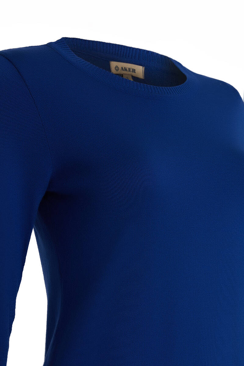 Saks Geniş Bisiklet Yaka Triko Kazak
