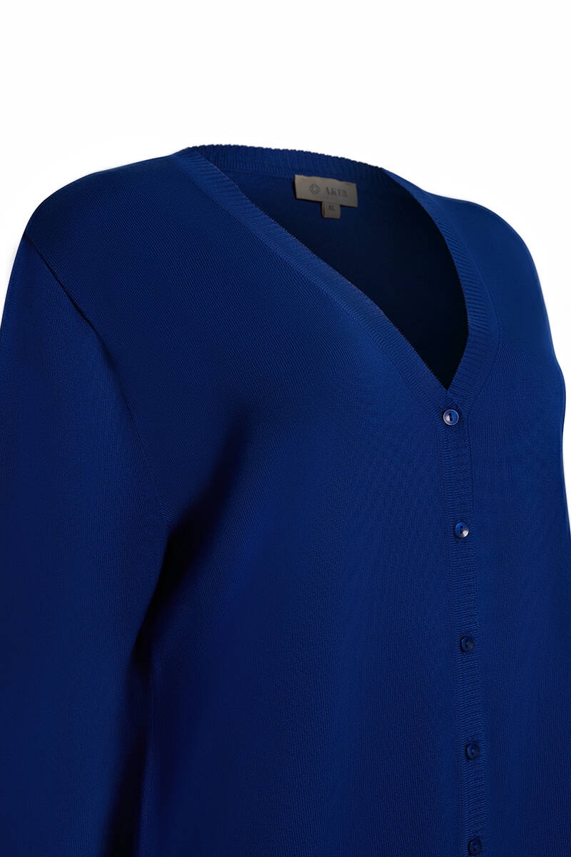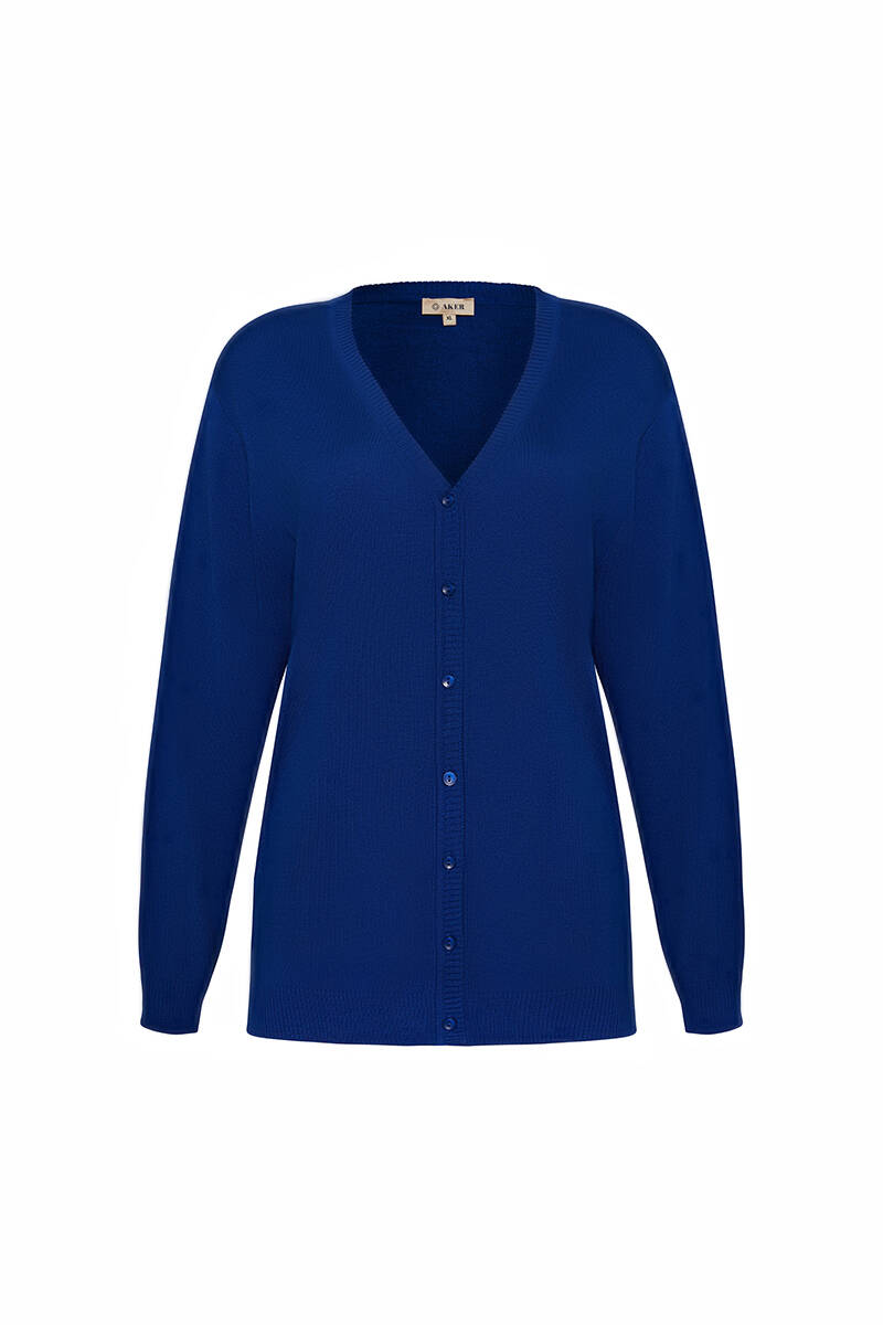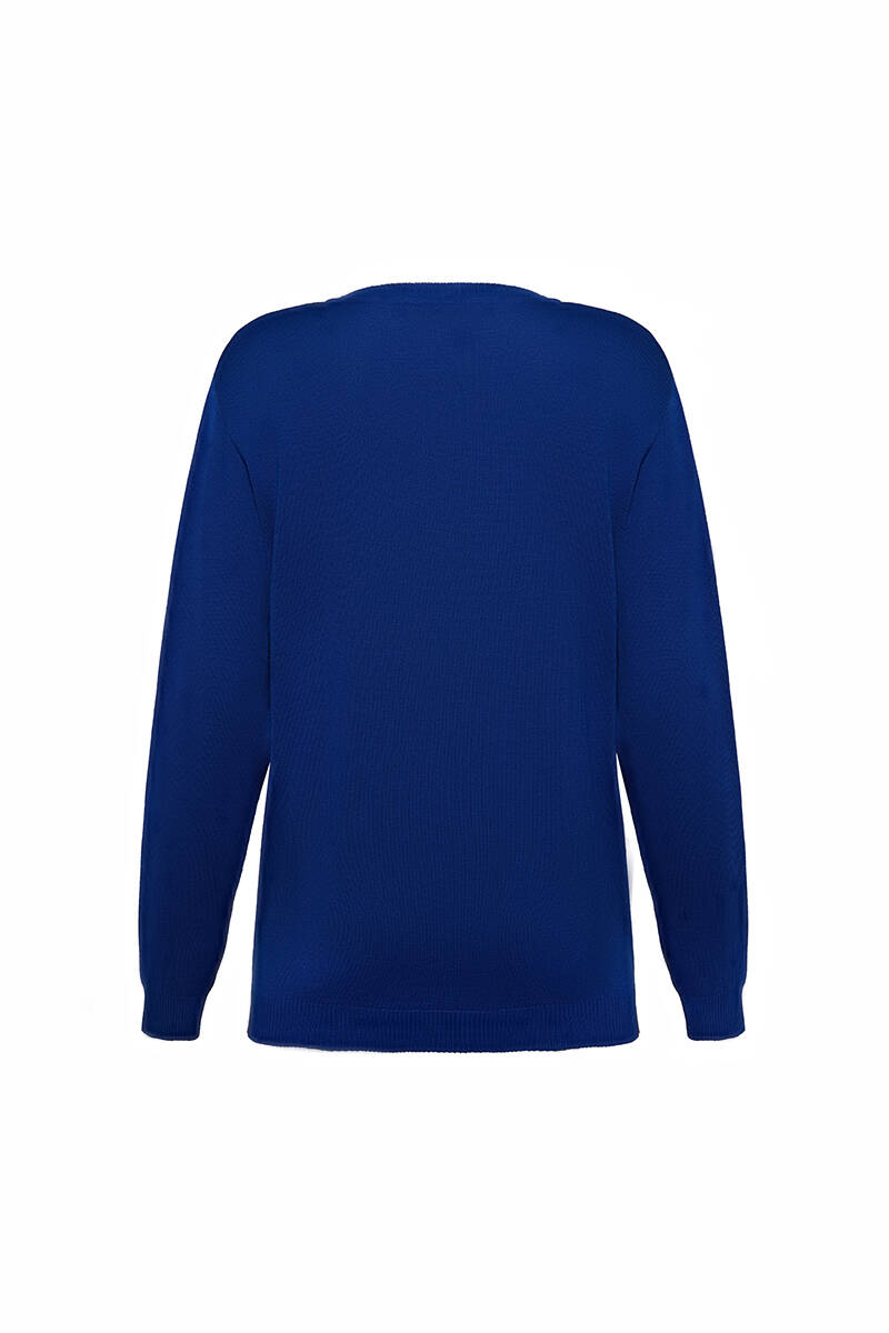 Lacivert Cepleri İşleme Detaylı Örme Uzun Hırka