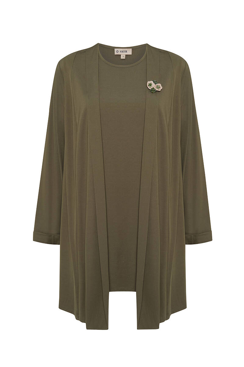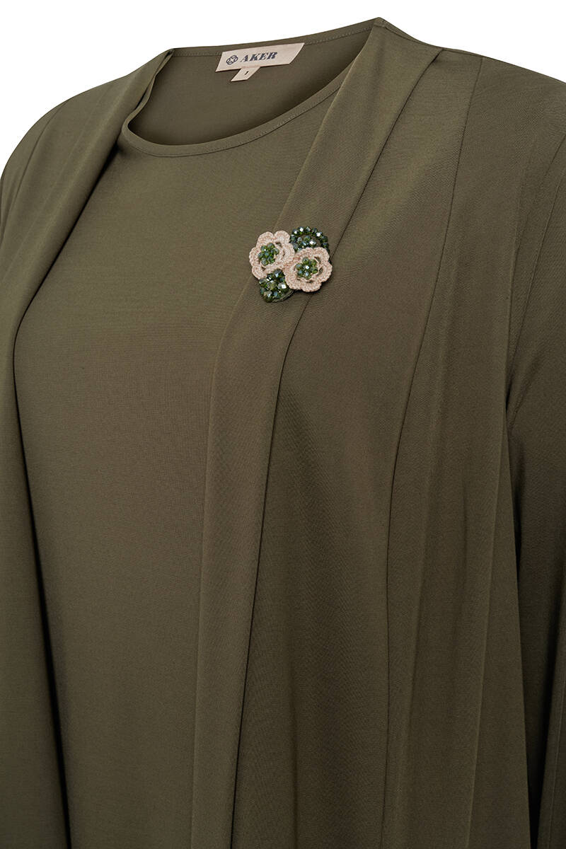 Haki Şal Yaka İçi Yarım Kollu Tween Set