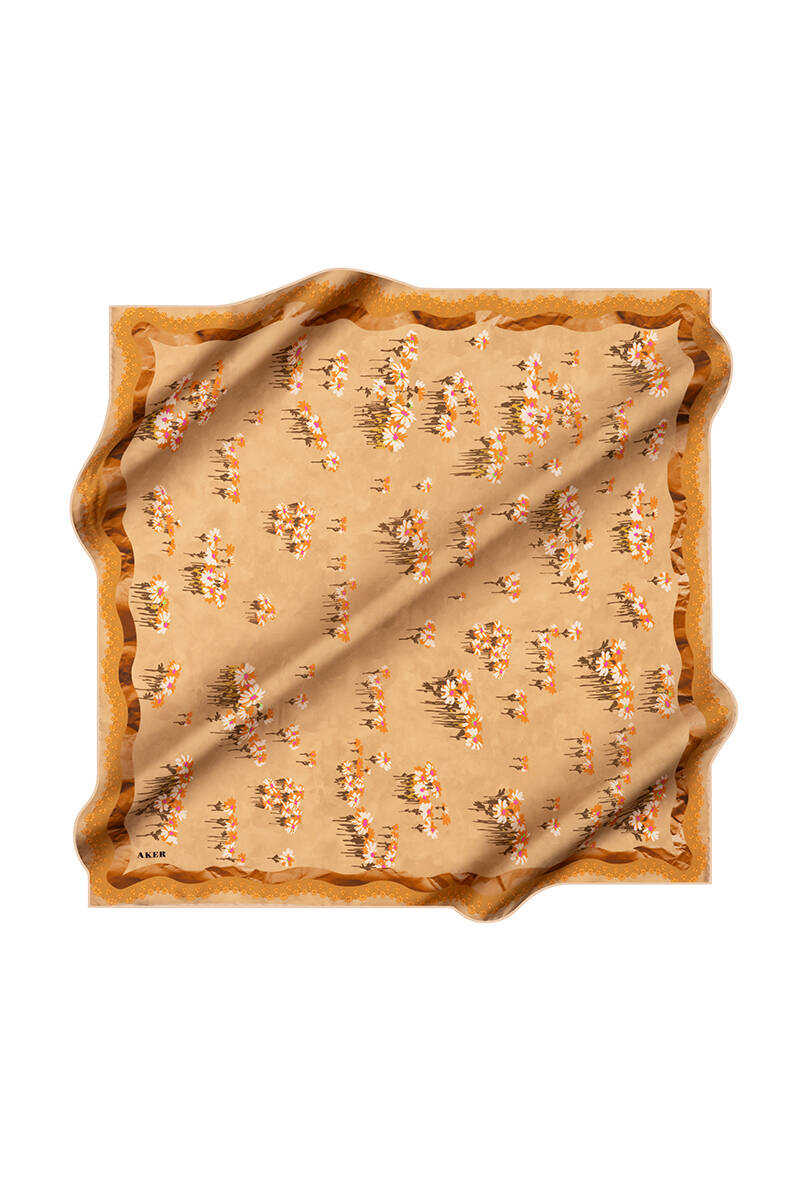 Çiçek Desenli 90X90 İpek Krep Saten Eşarp