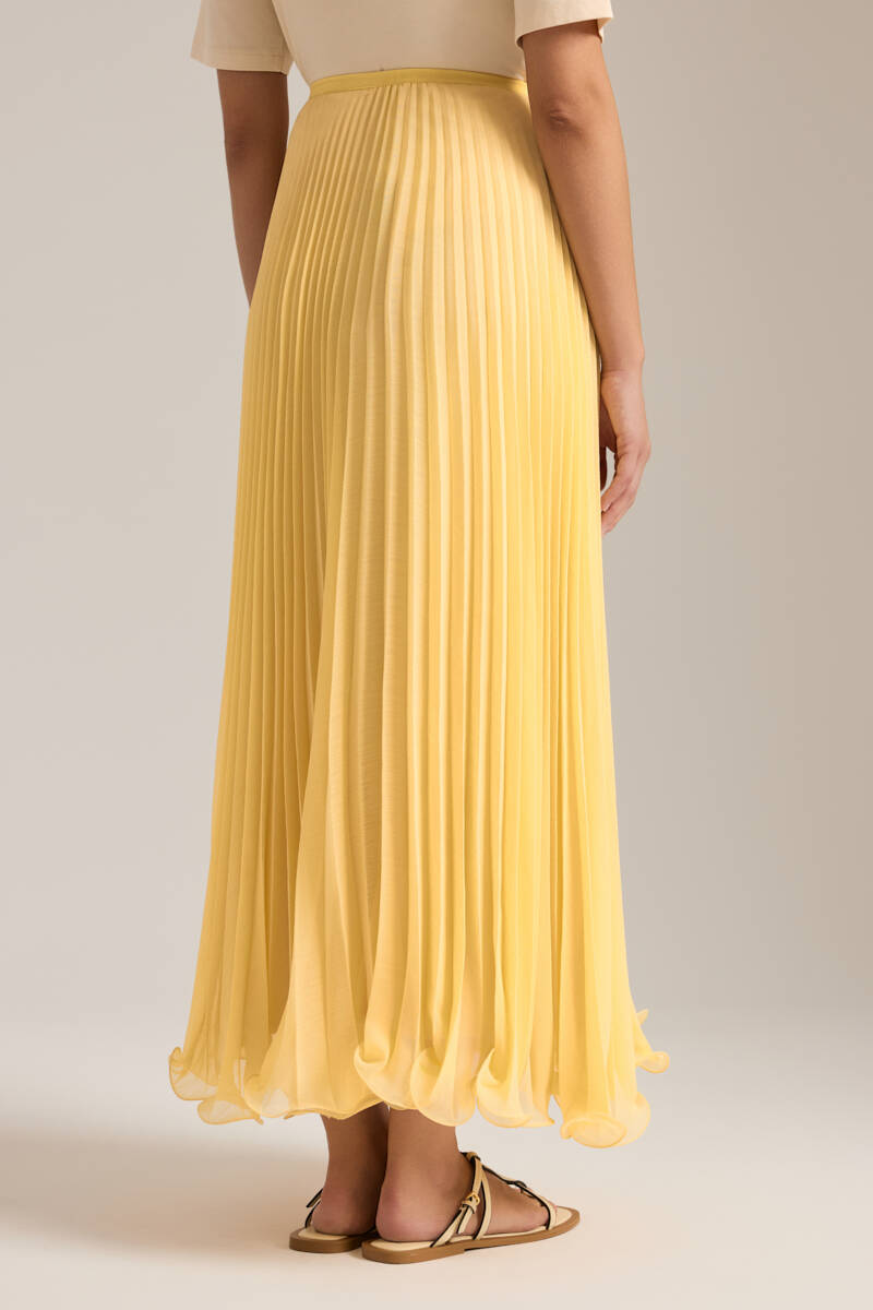 İndigo Kloş Yırtmaçllı Keten Etek