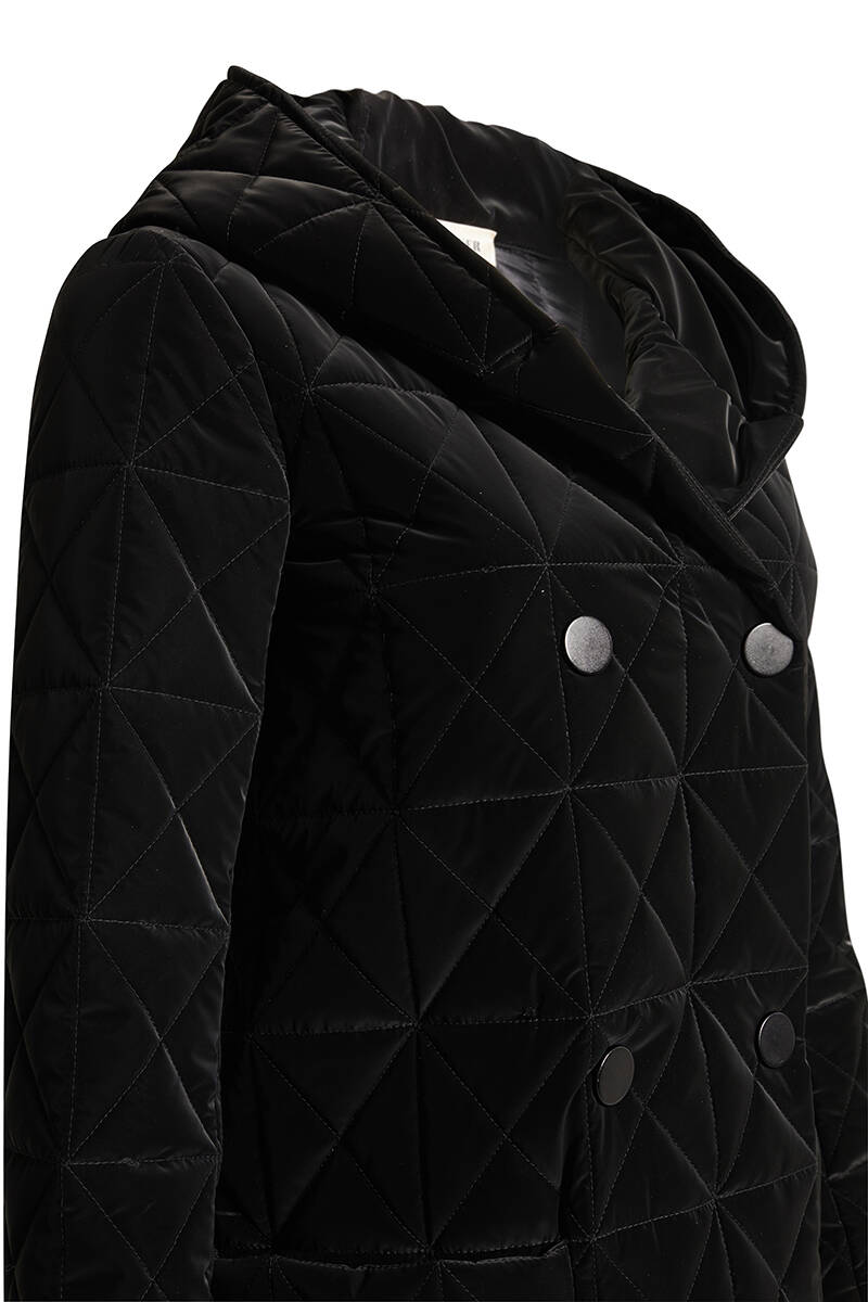 Siyah Fermuarlı Seyyar Kuşaklı Kapitone Mont