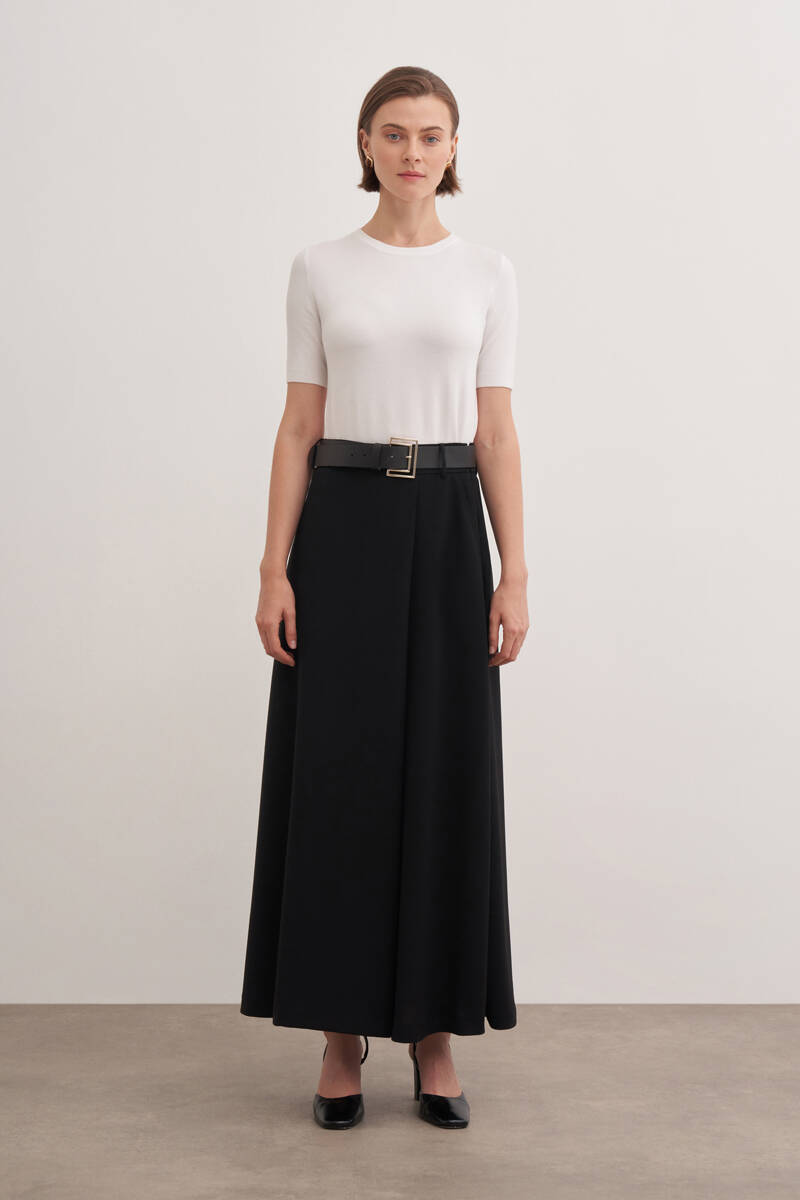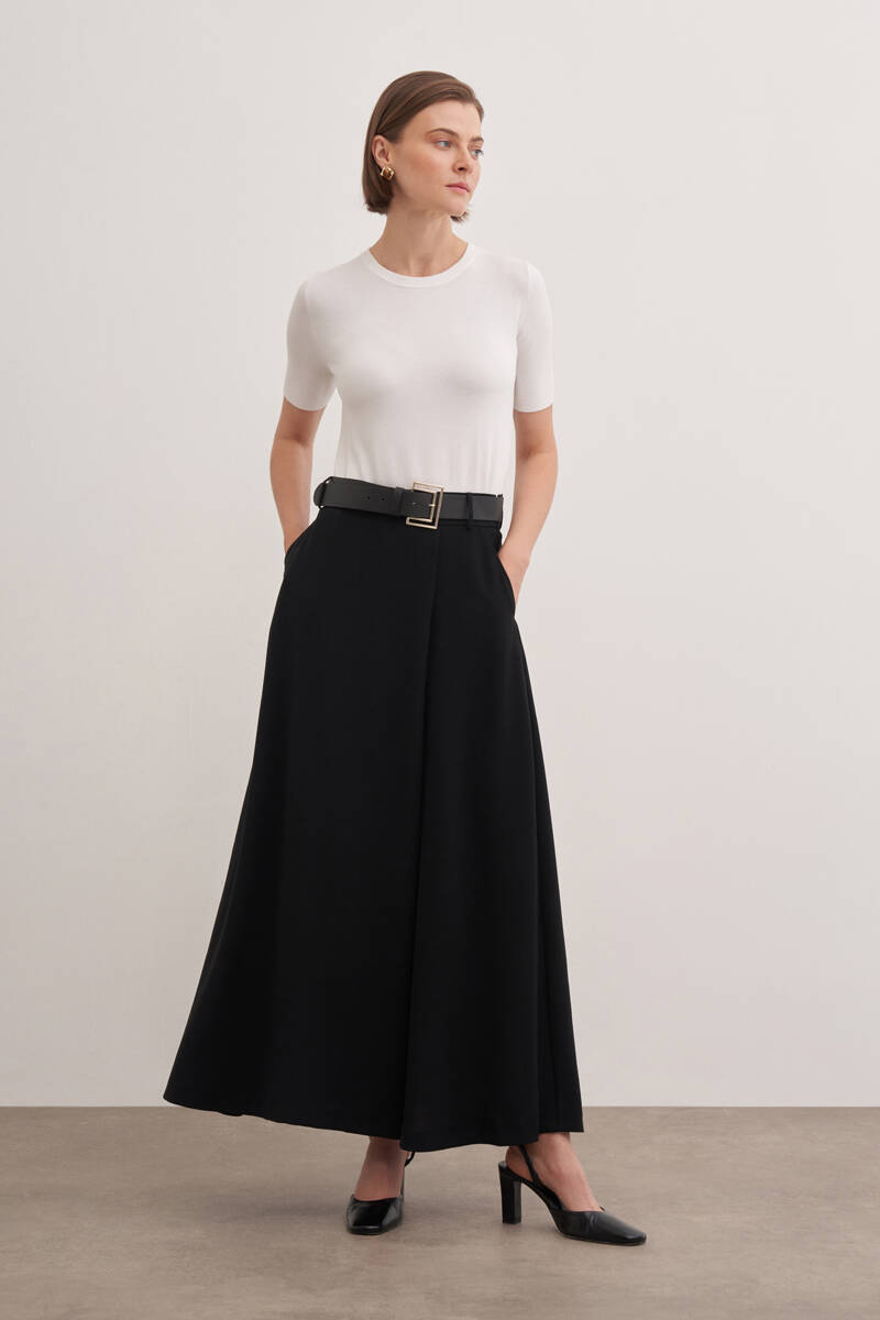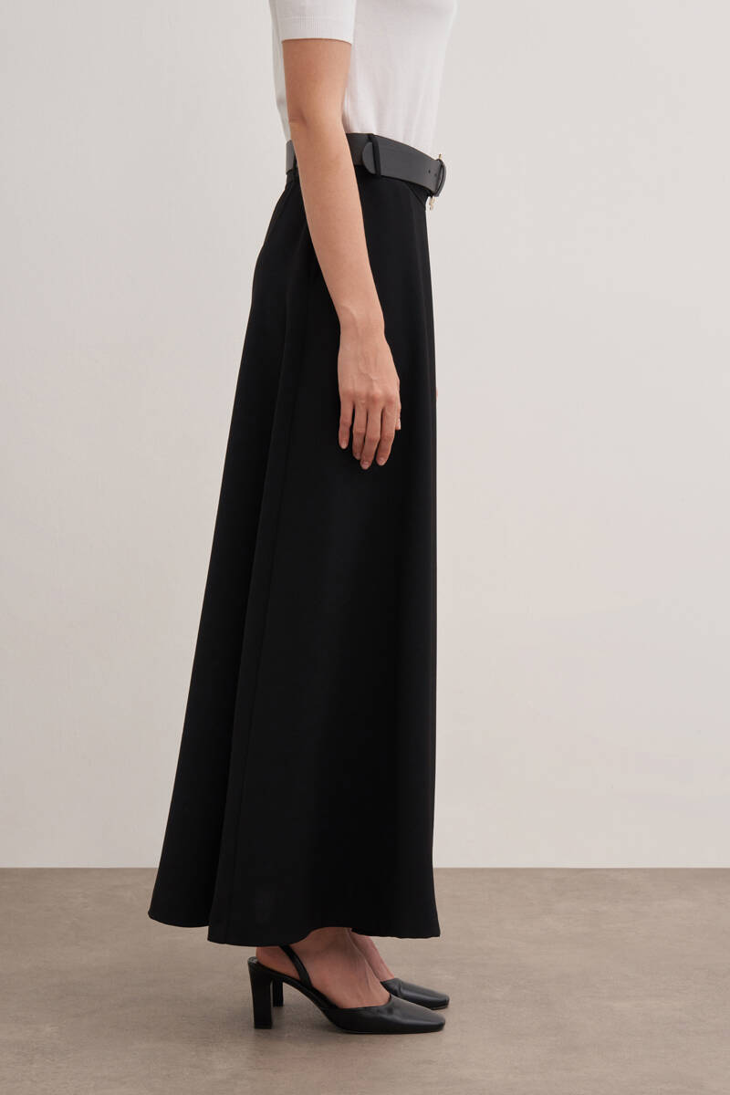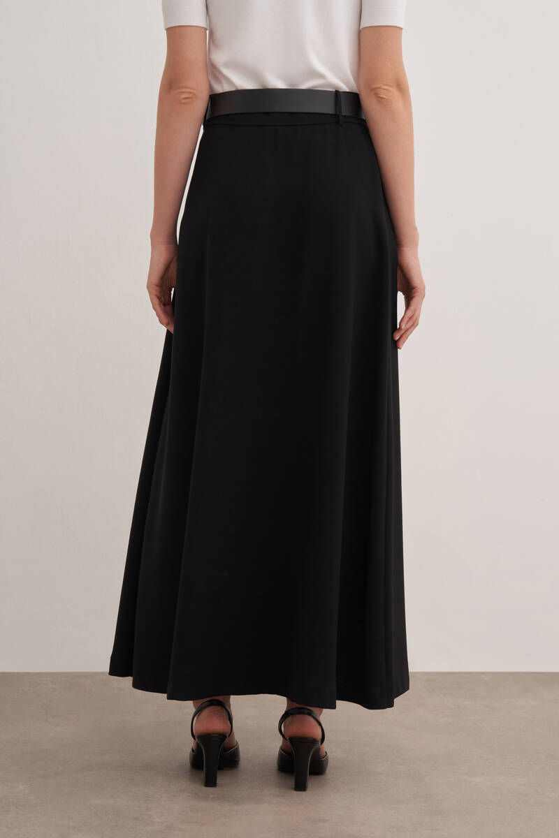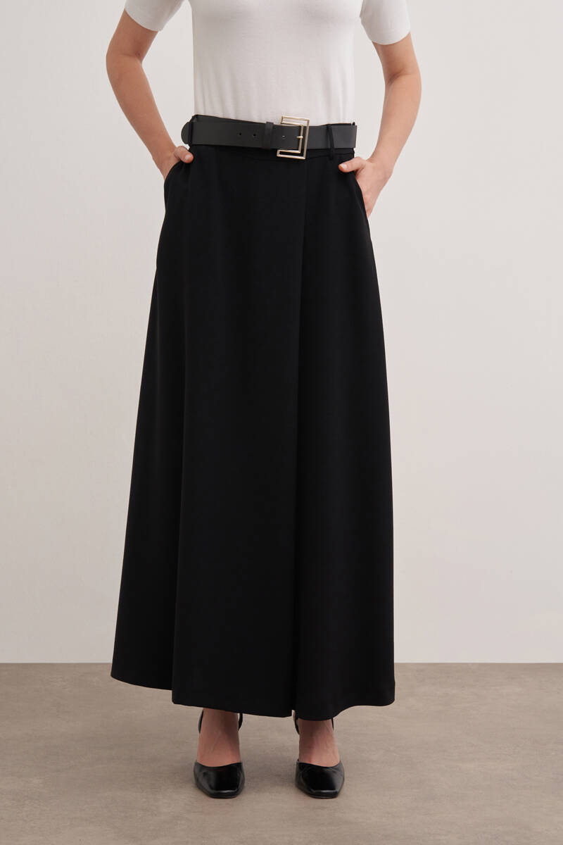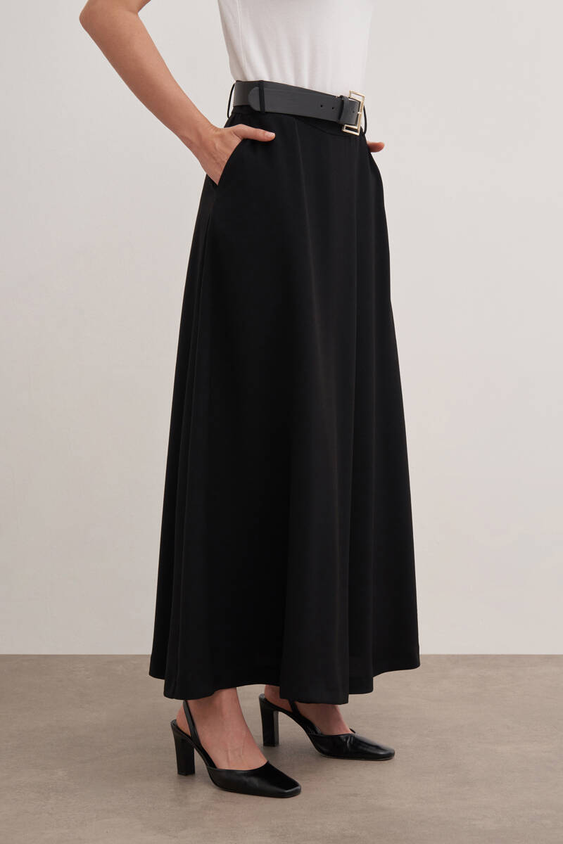 Siyah Kloş Yırtmaçllı Keten Etek