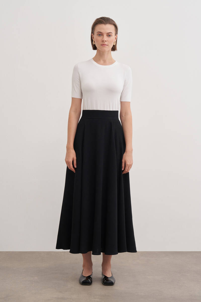 Siyah Kloş Yırtmaçllı Keten Etek