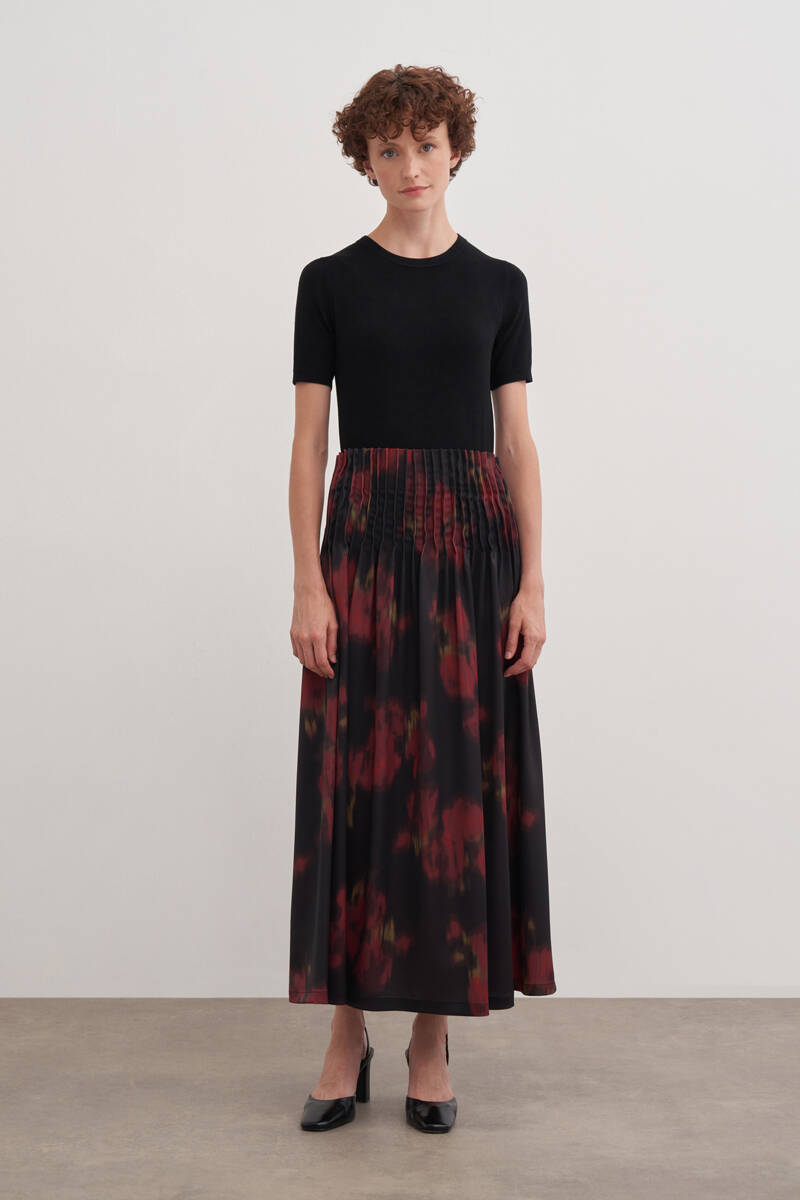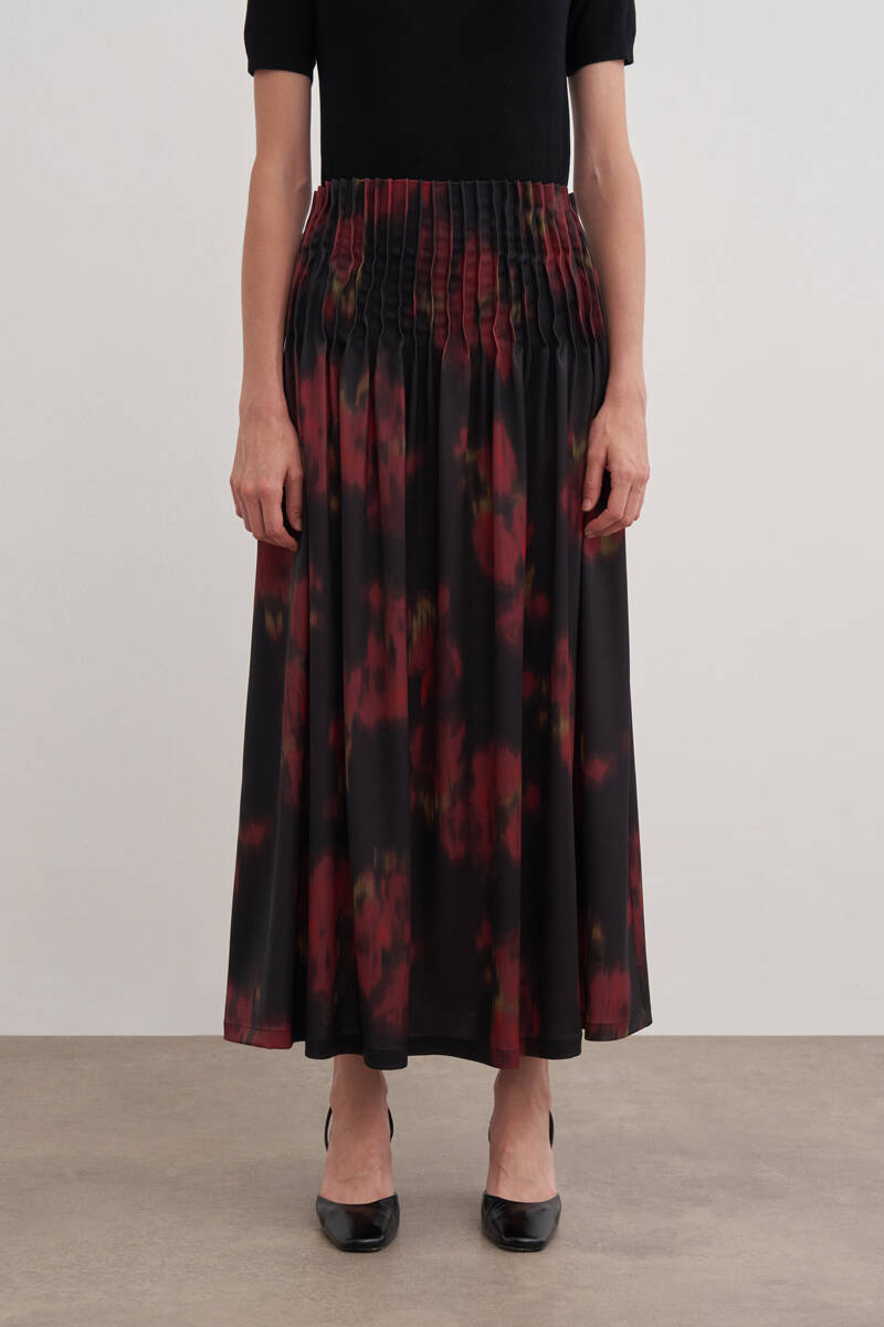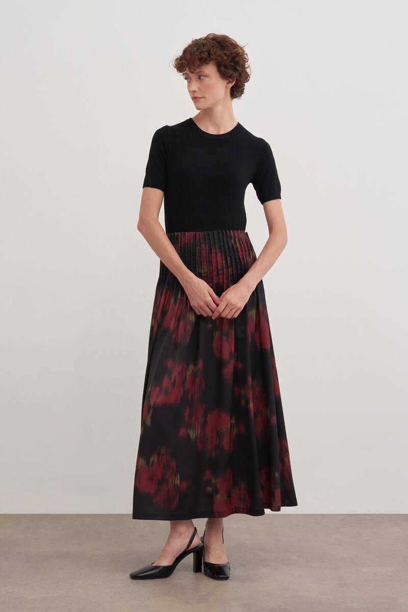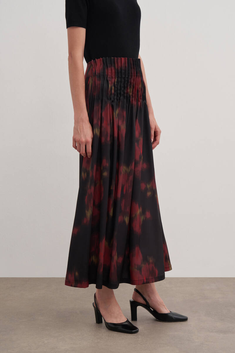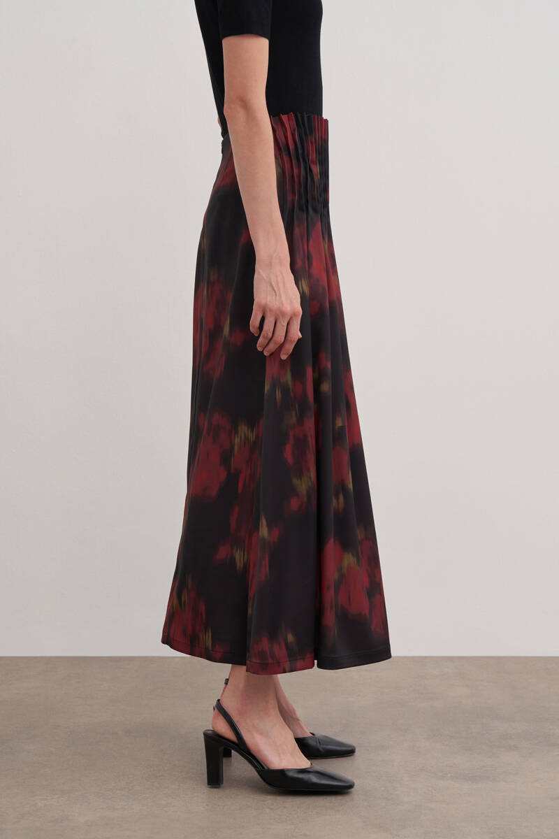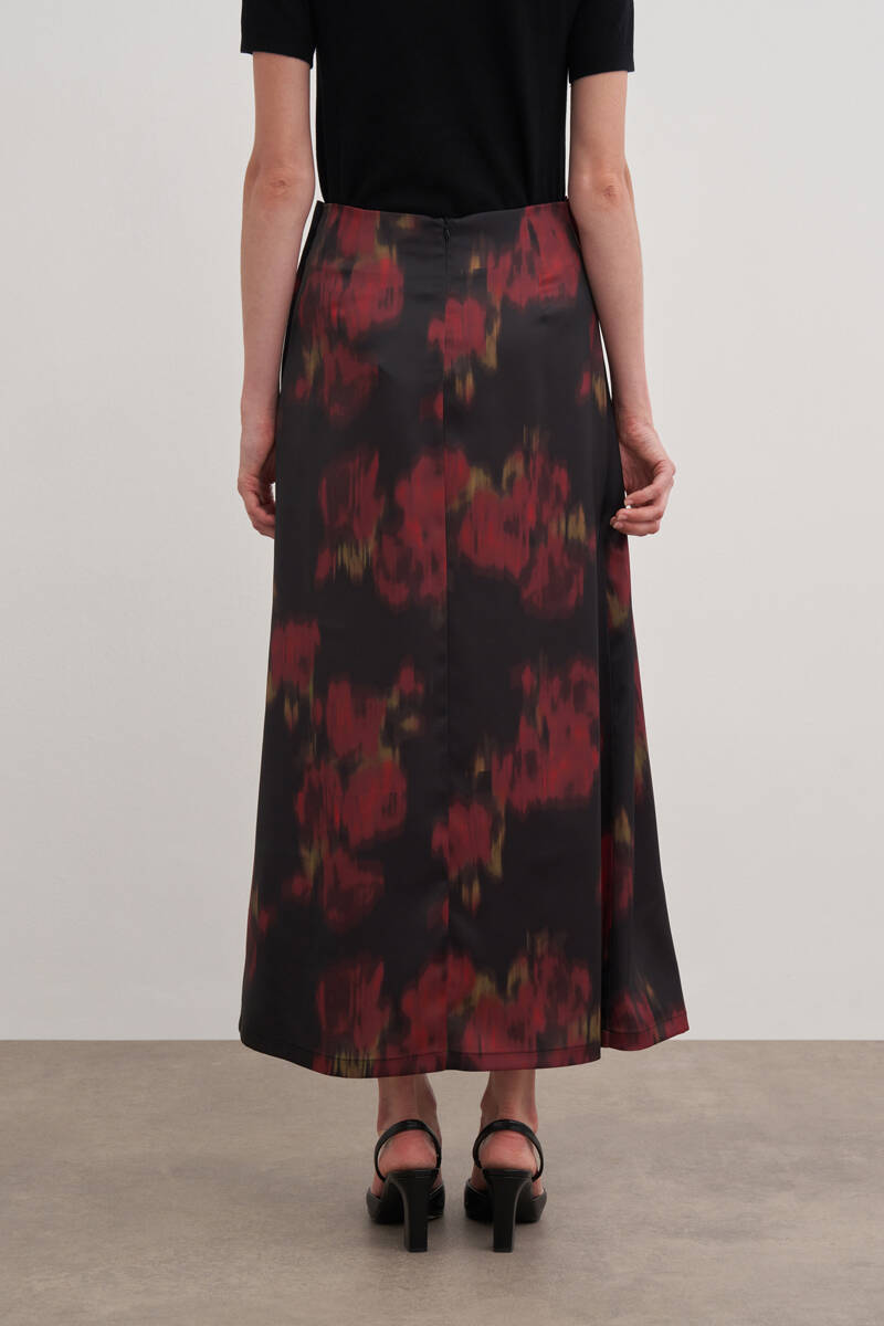 Siyah Kloş Yırtmaçllı Keten Etek