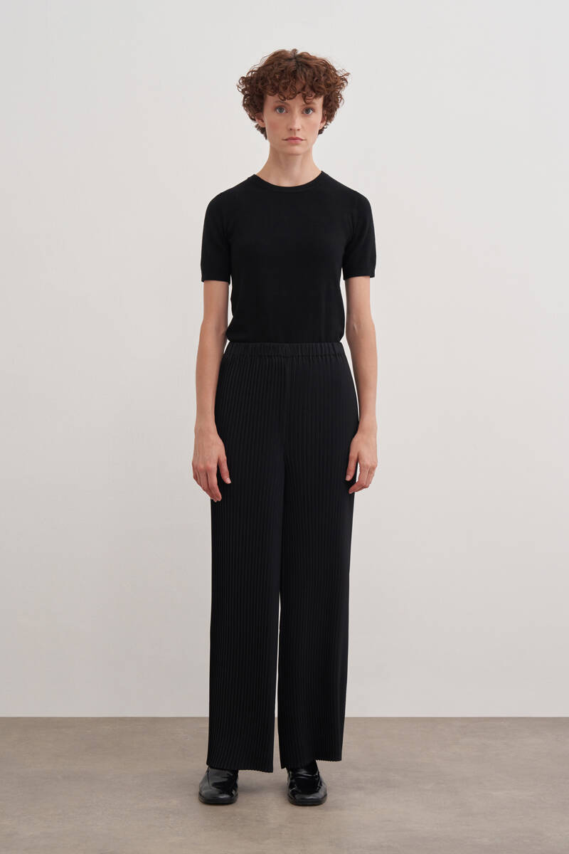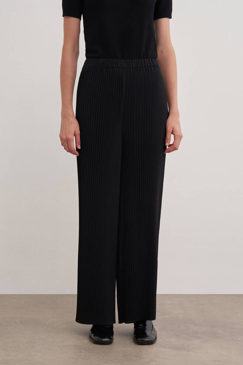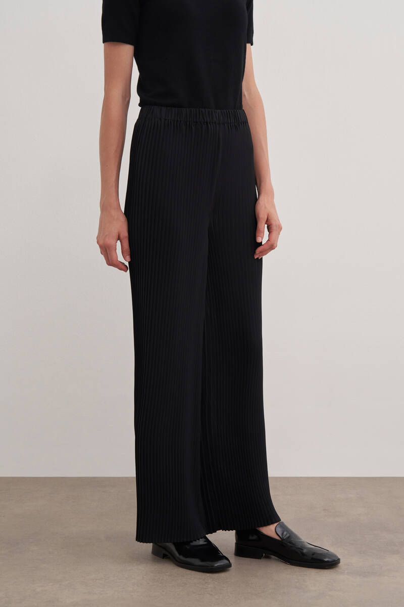 Siyah Desenli Piliseli Pantolon