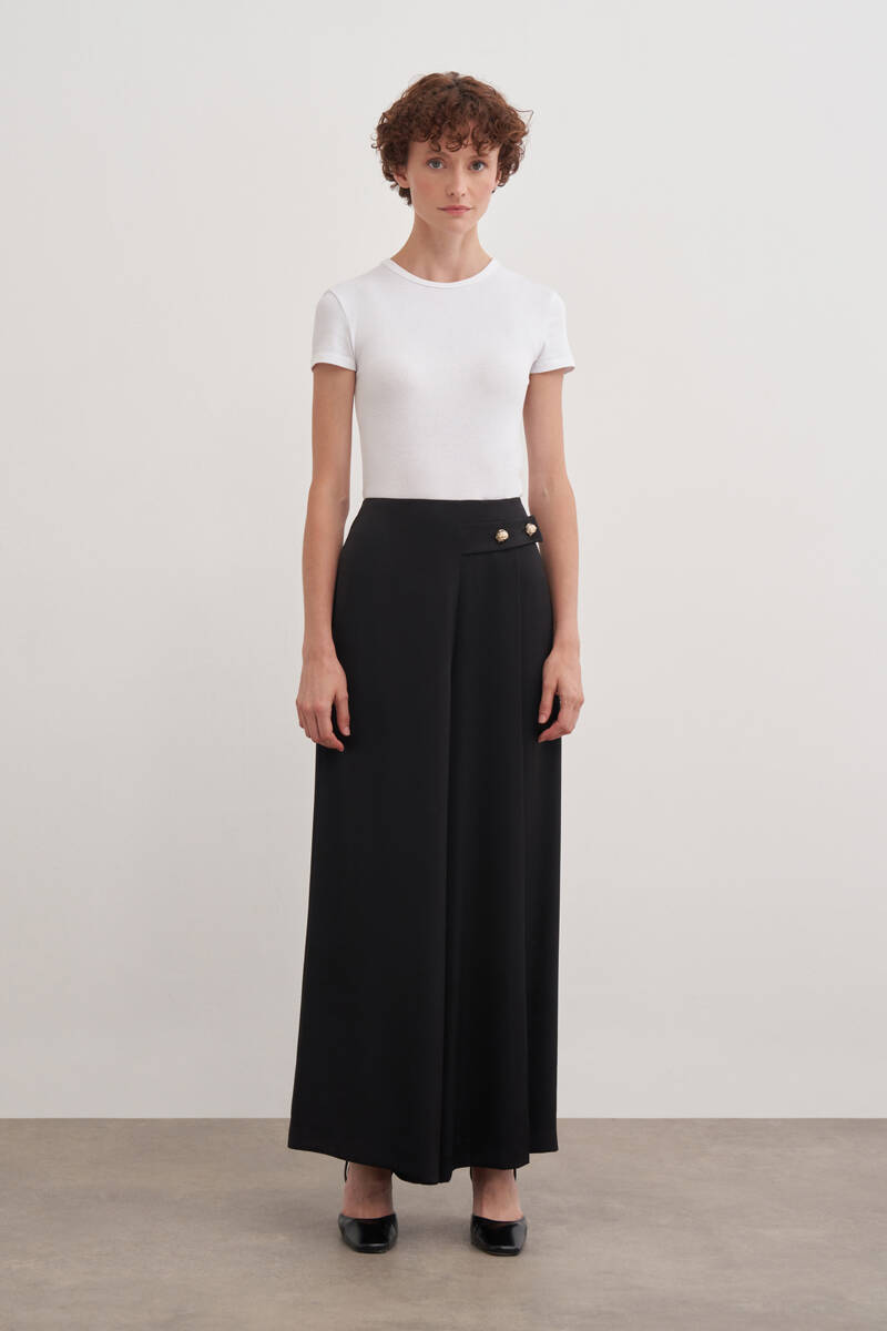 Siyah Beli Lastik Detaylı Dökümlü Pantolon Etek
