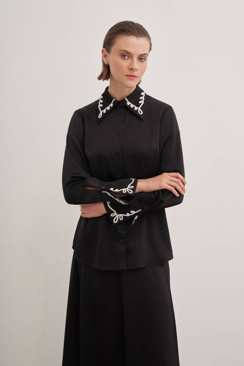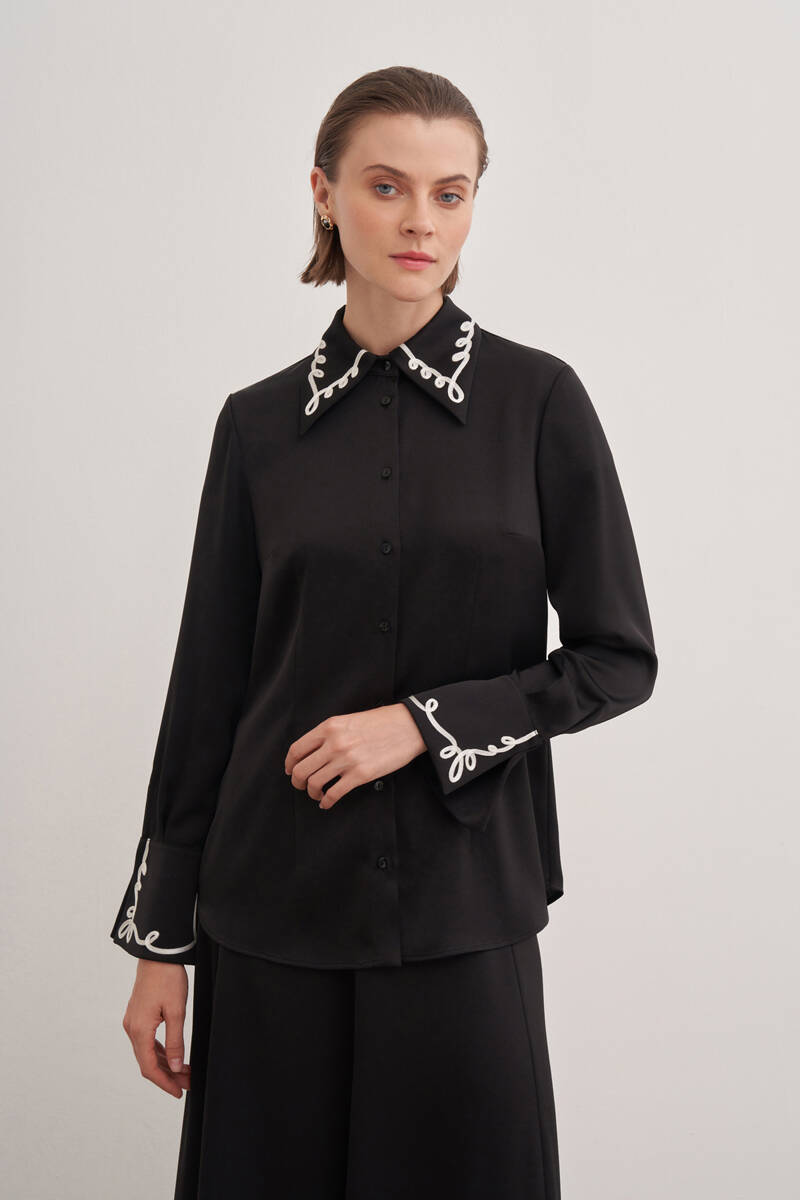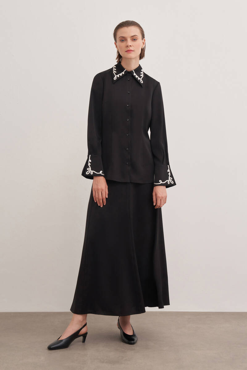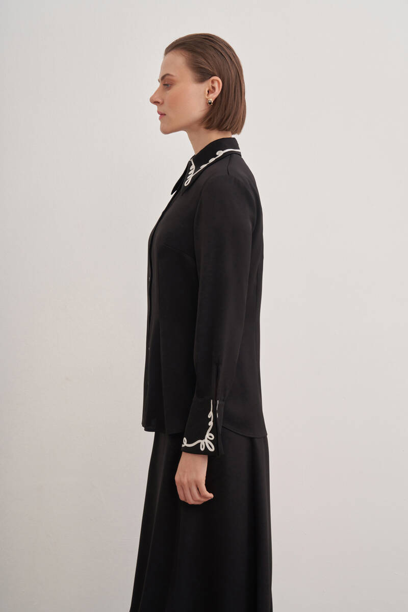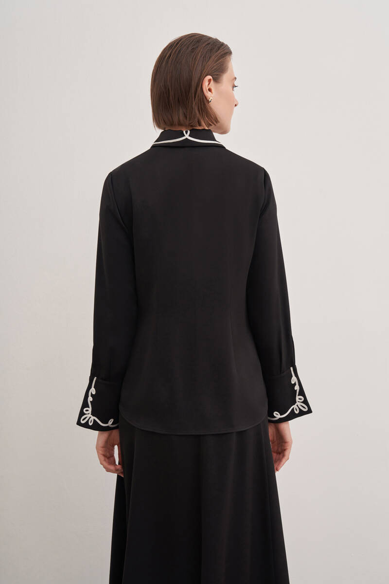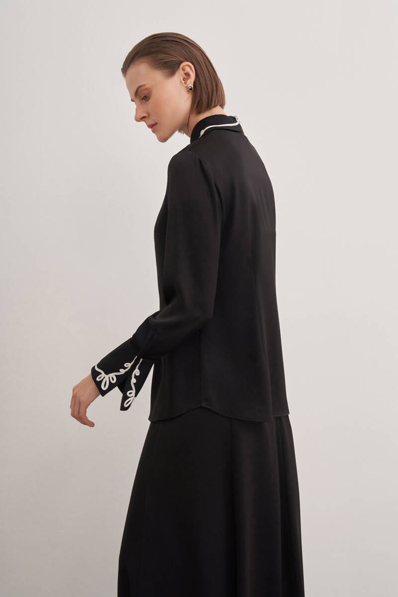 Siyah Kol Ucu Dikiş Detaylı Viscon Tunik