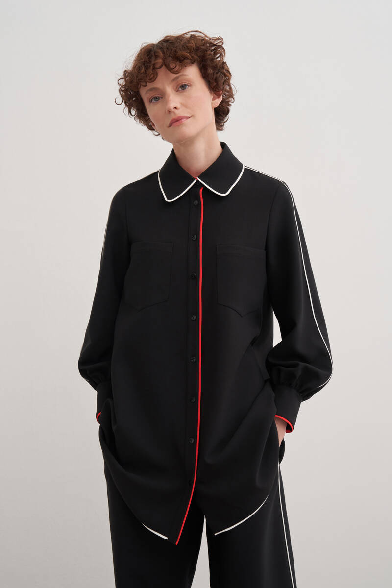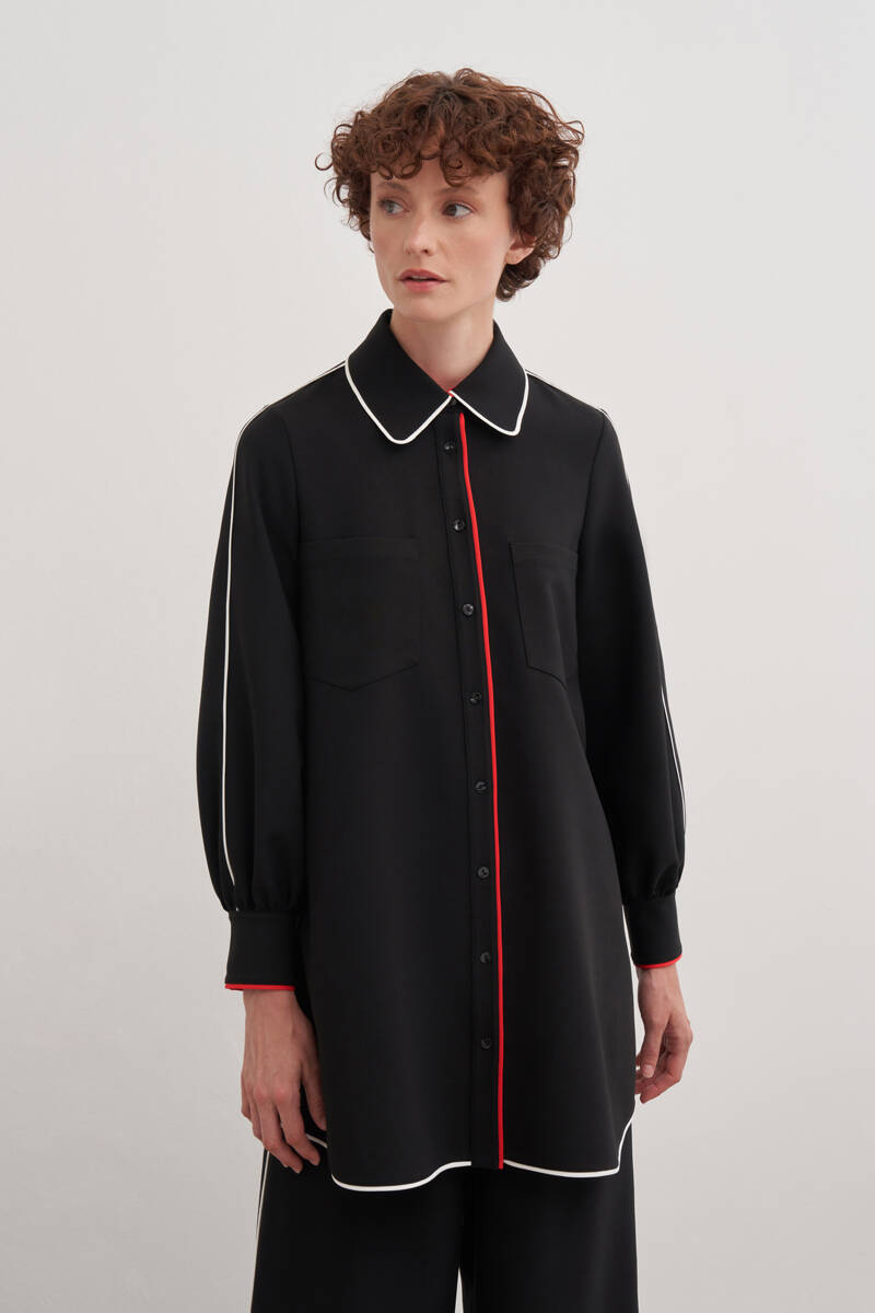 Siyah Kol Ucu Dikiş Detaylı Viscon Tunik