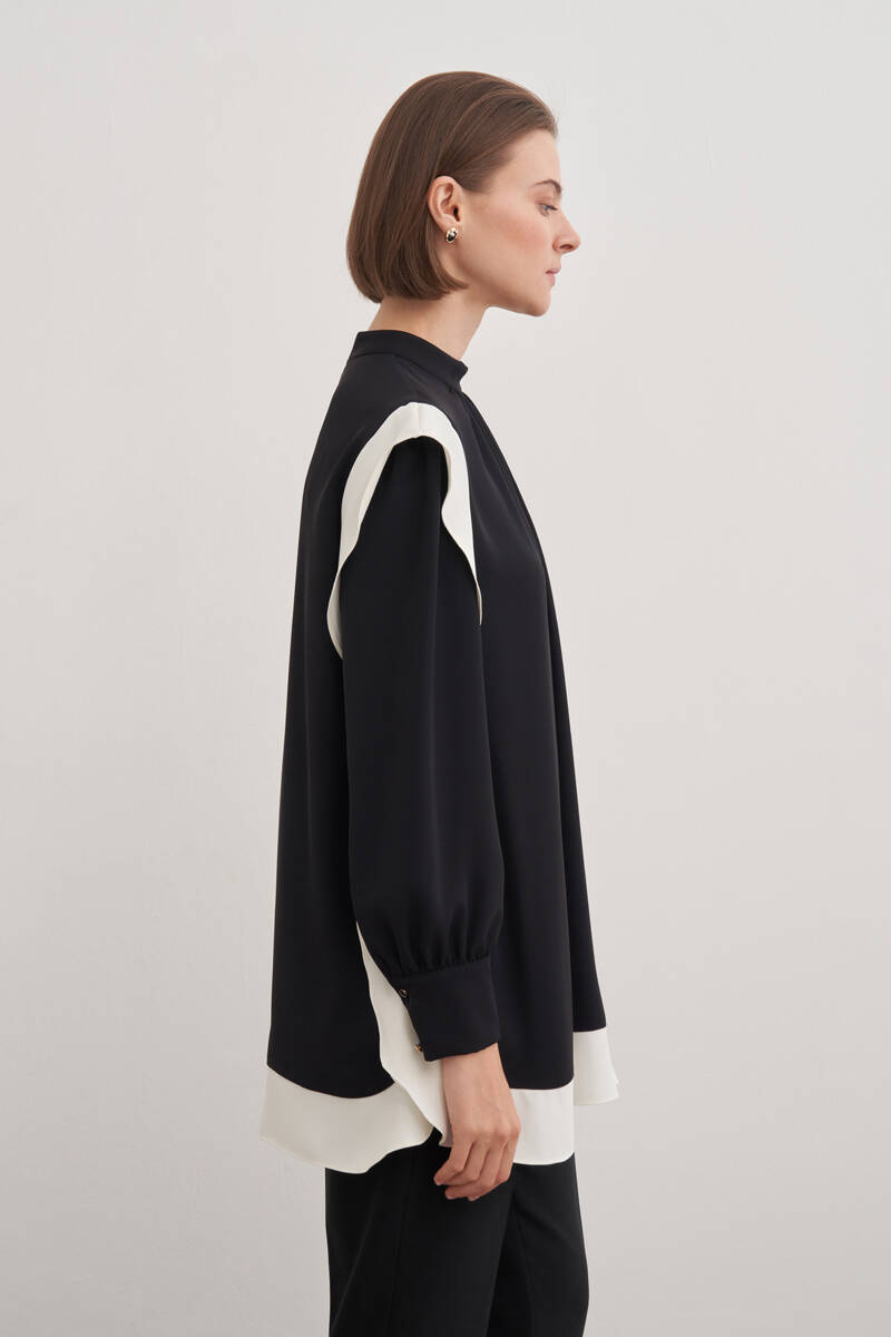 Siyah Kol Ucu Dikiş Detaylı Viscon Tunik