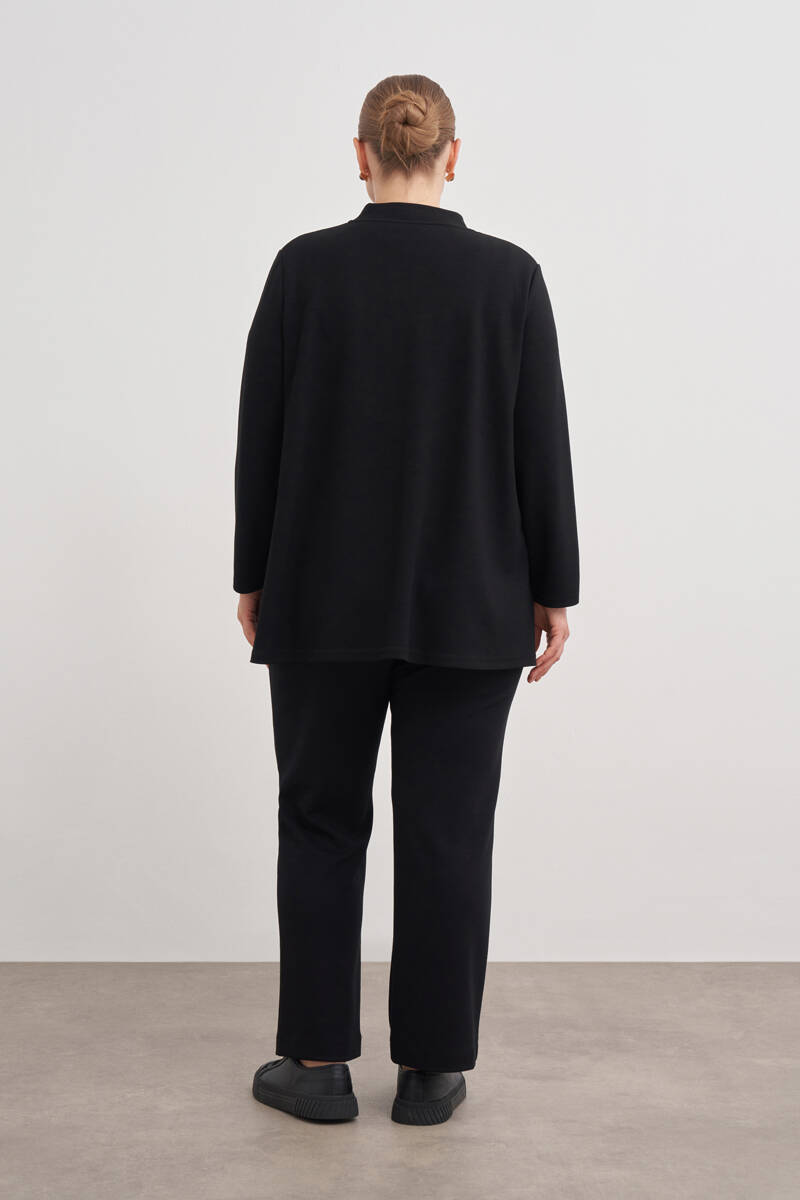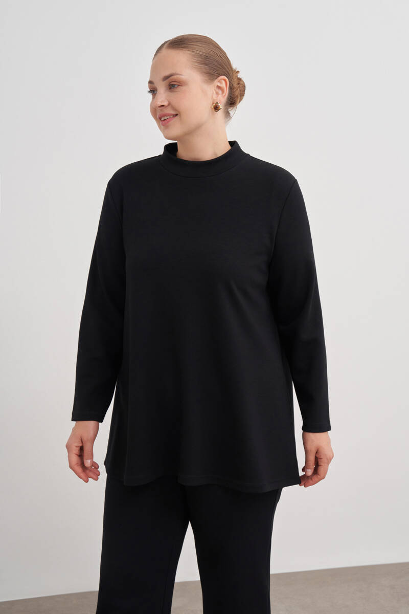 Siyah Dik Yaka Sweatshırt