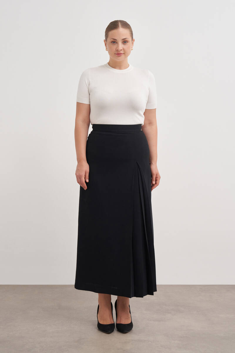 Siyah Beli Lastikli Robalı Dokuma Etek
