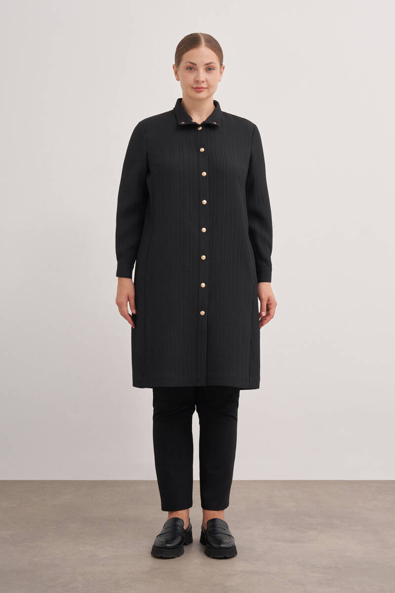 Siyah Çizgi Dokulu Tencel Rayon Kumaş Kap
