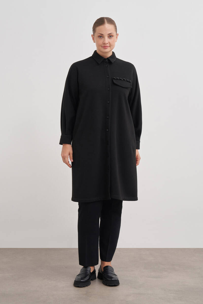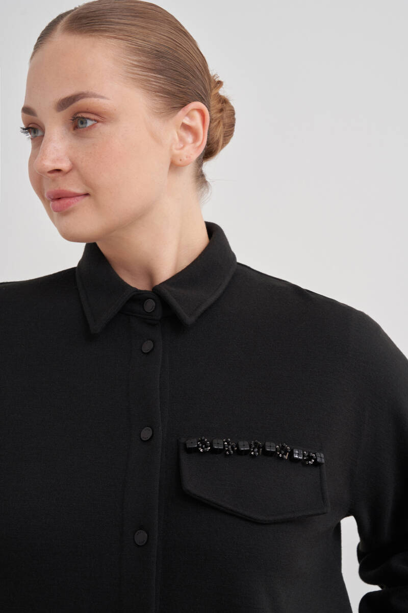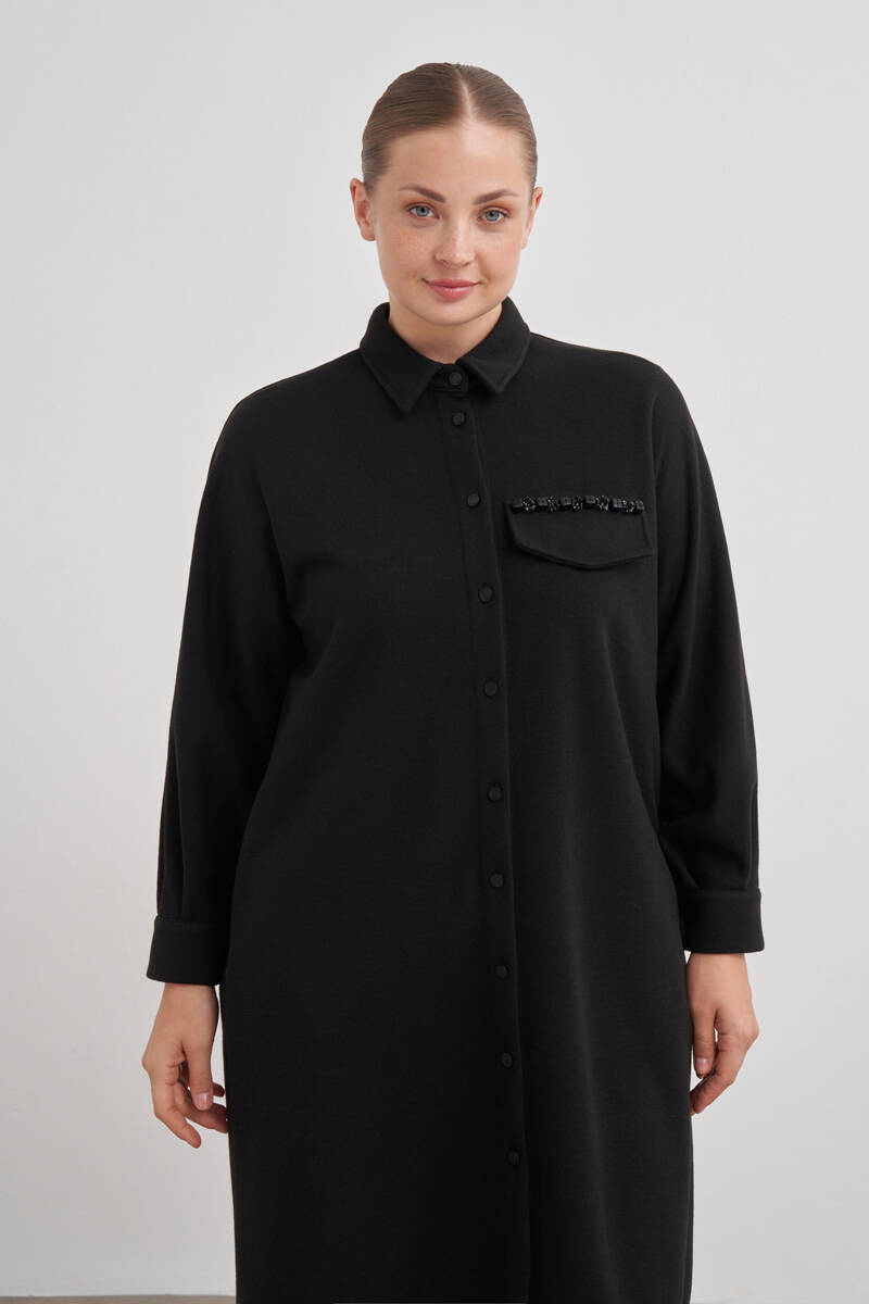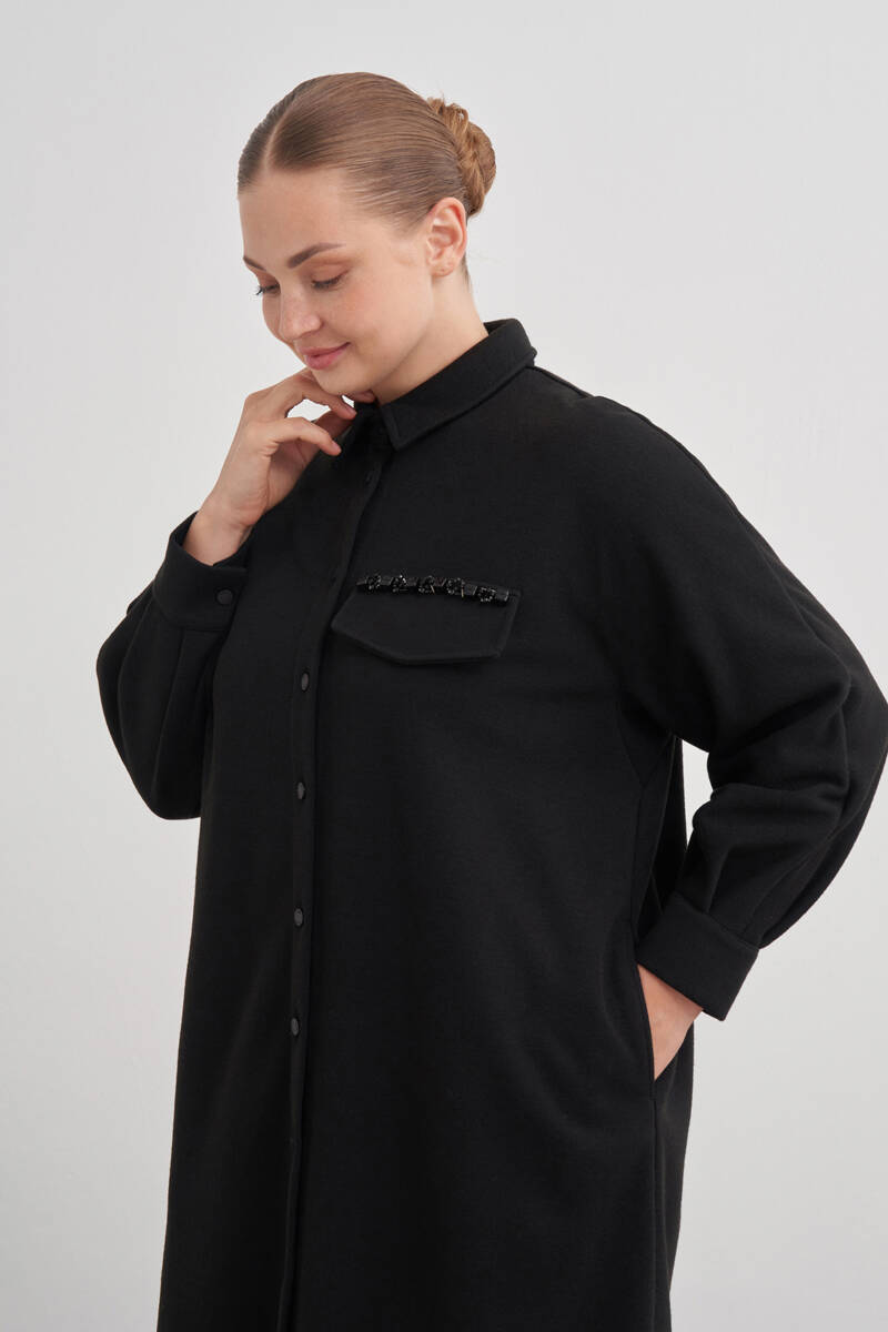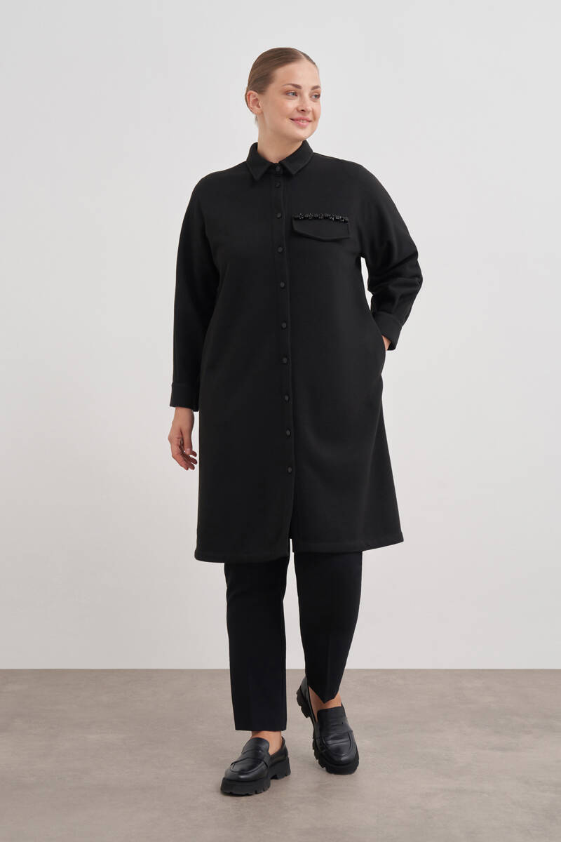 Siyah Yakası Taşlı Düğmeli Kap