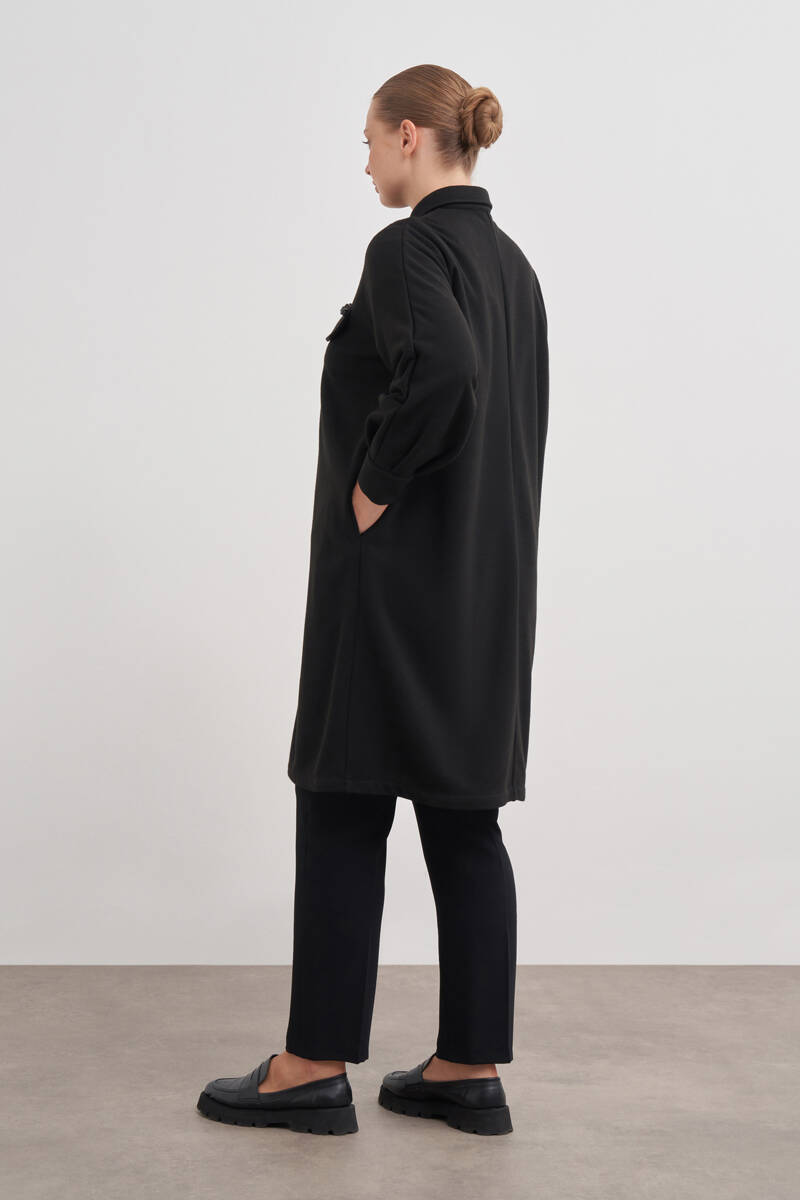 Siyah Kolları Pile Detaylı Kap