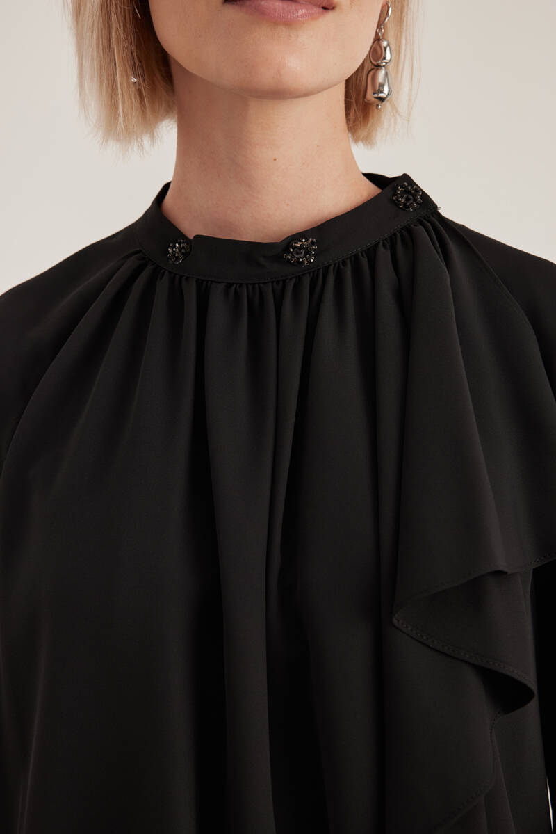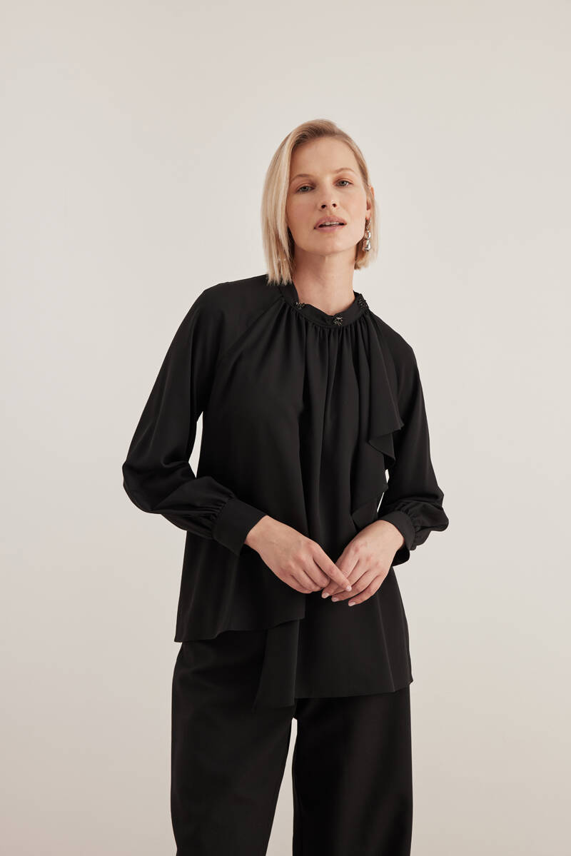 Siyah Rahat Form Keten Bluz