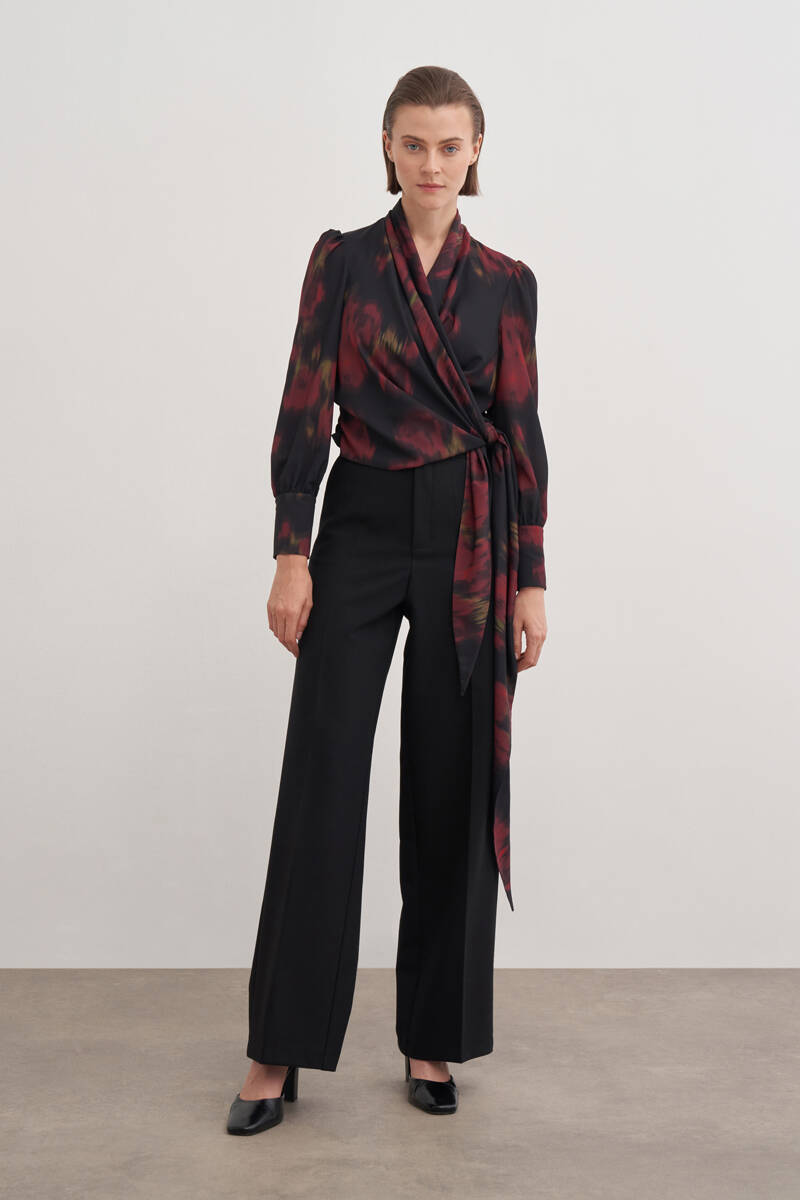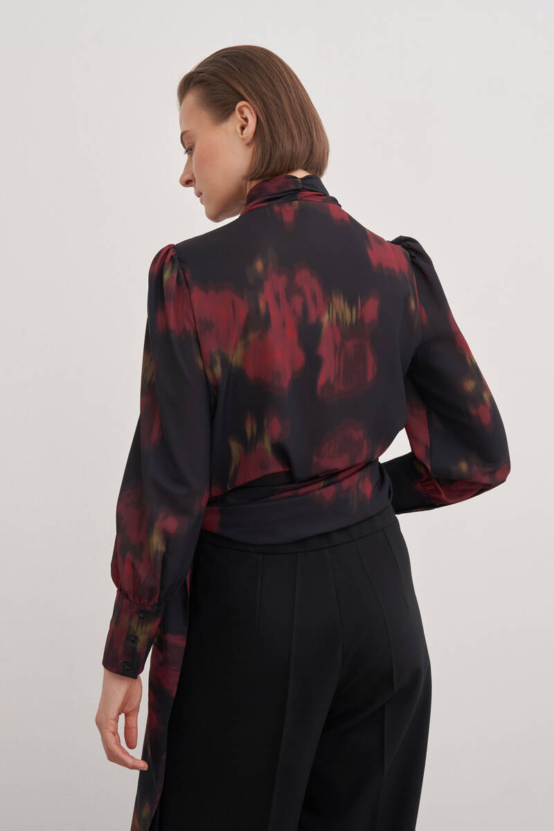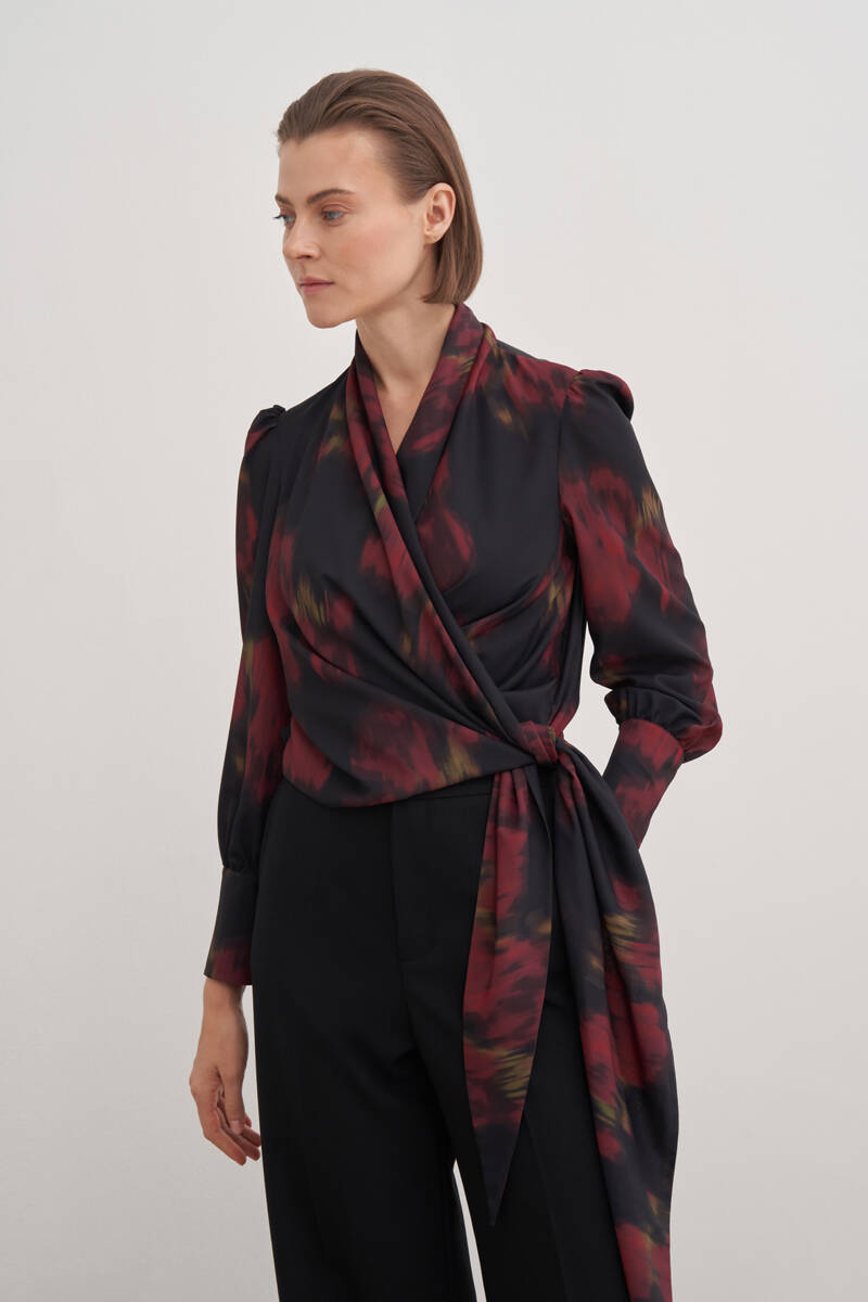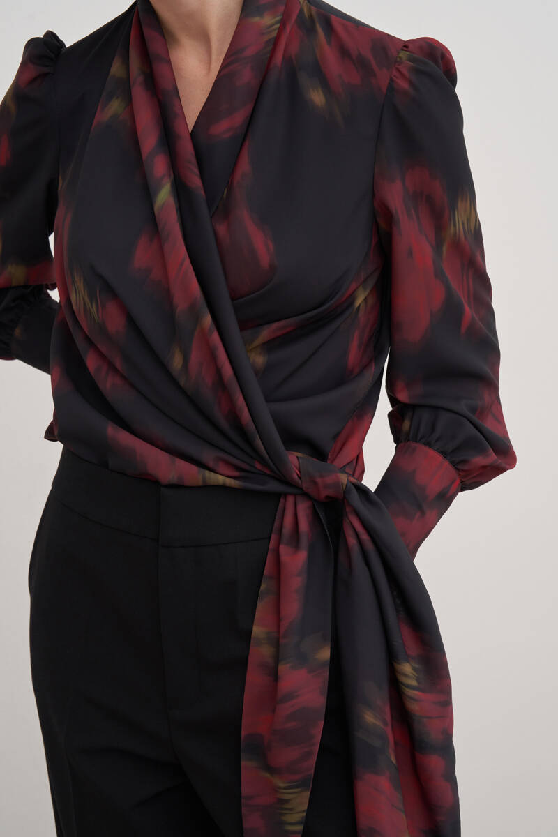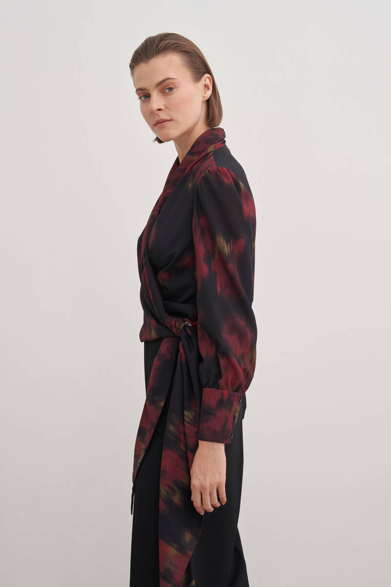 Kırmızı Çiçek Desenli İnce Dokuma Bluz