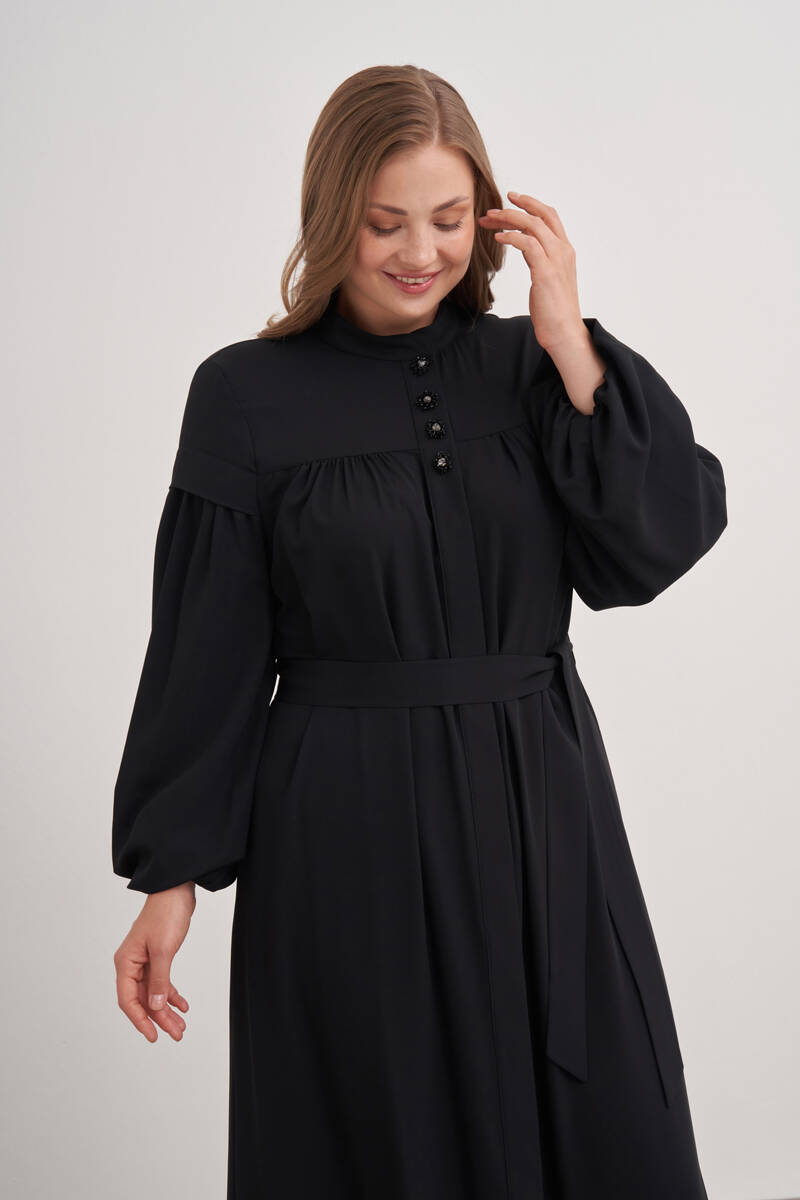 Siyah Doğal Dokulu Kumaş Gömlek Elbise