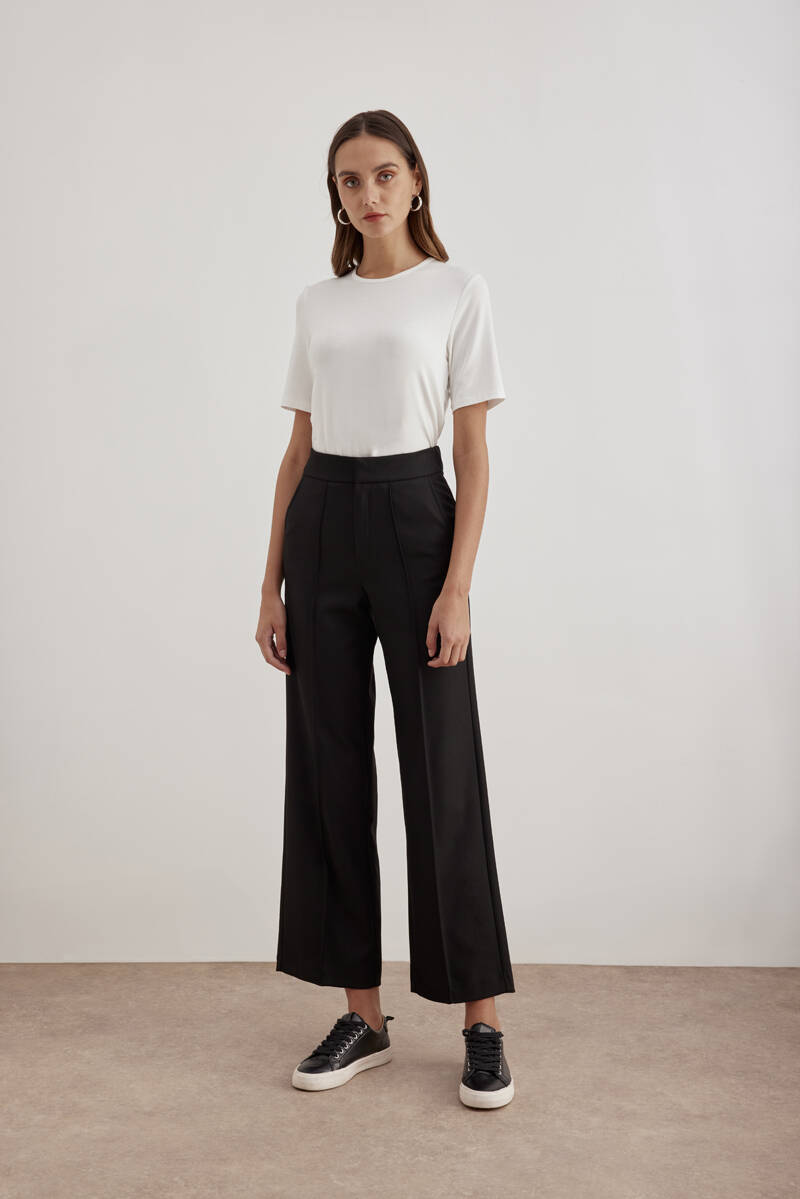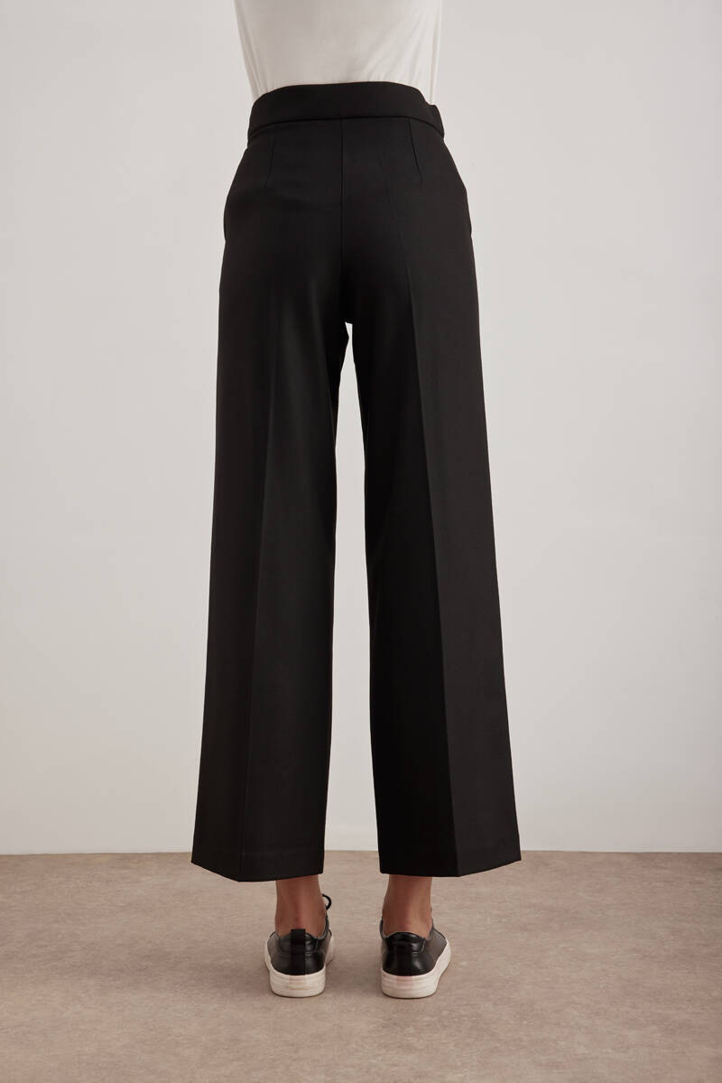 Siyah Beli Lastikli Krep Örme Pantolon