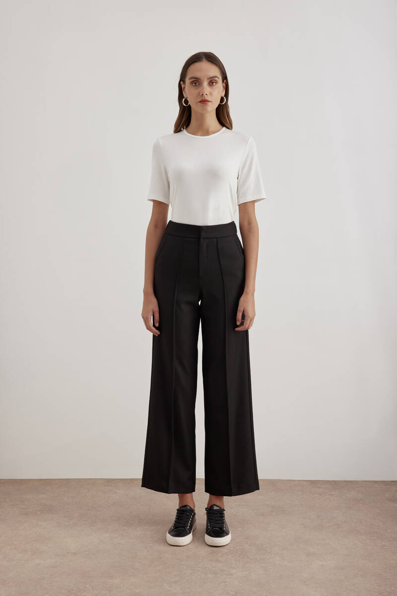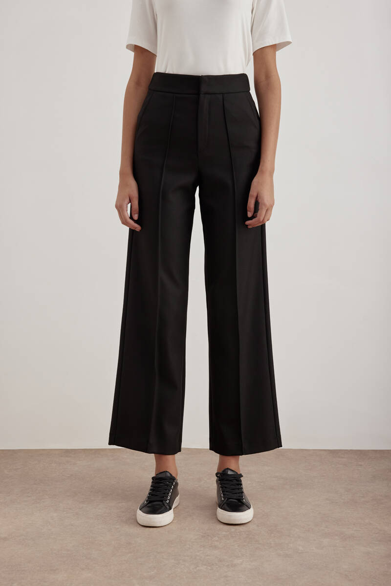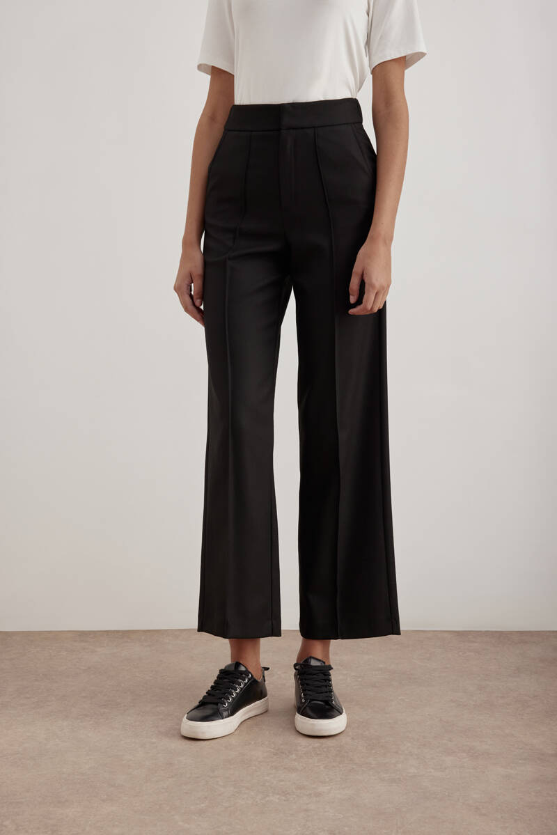 Siyah Belden Metal Toka Bağlama Detaylı Dokuma Pantolon