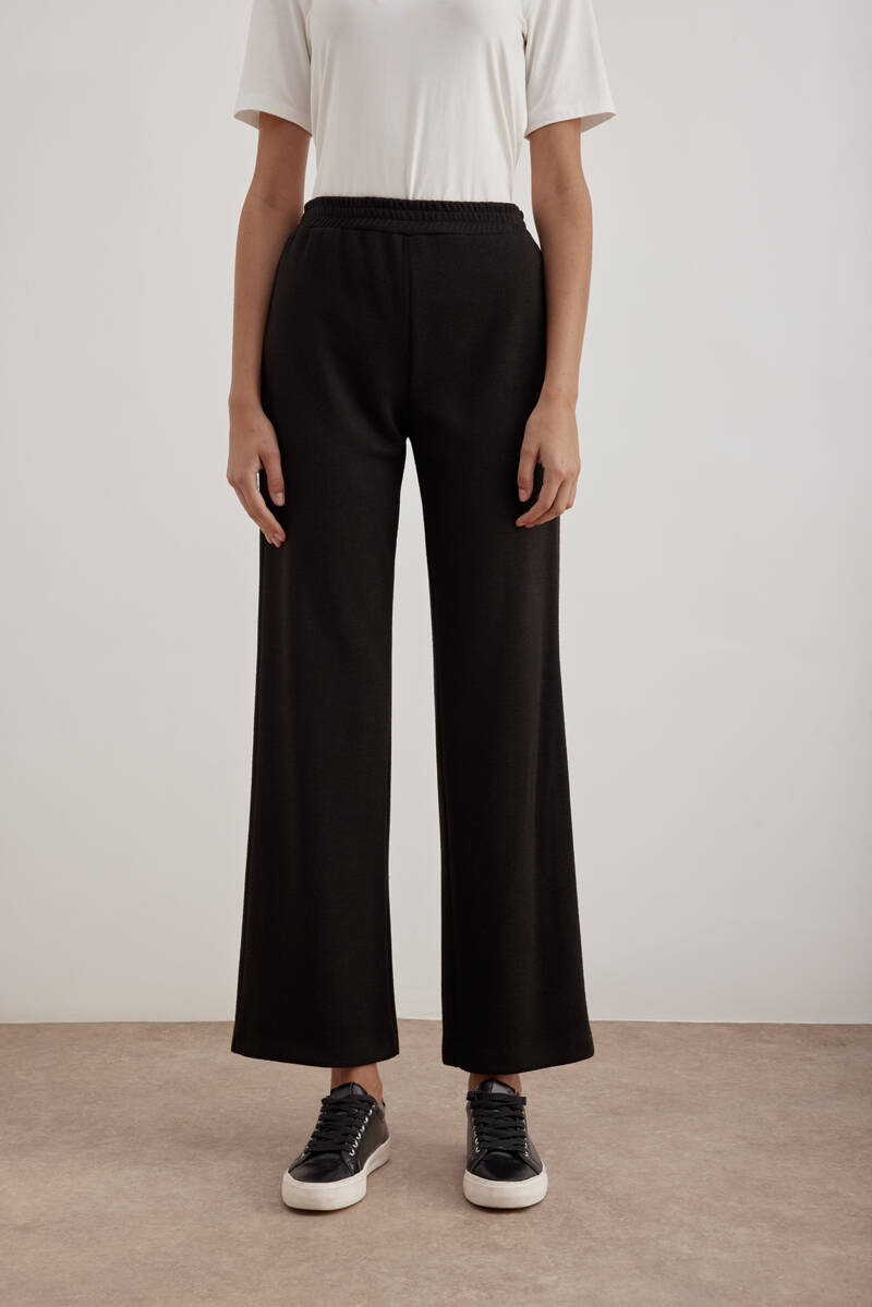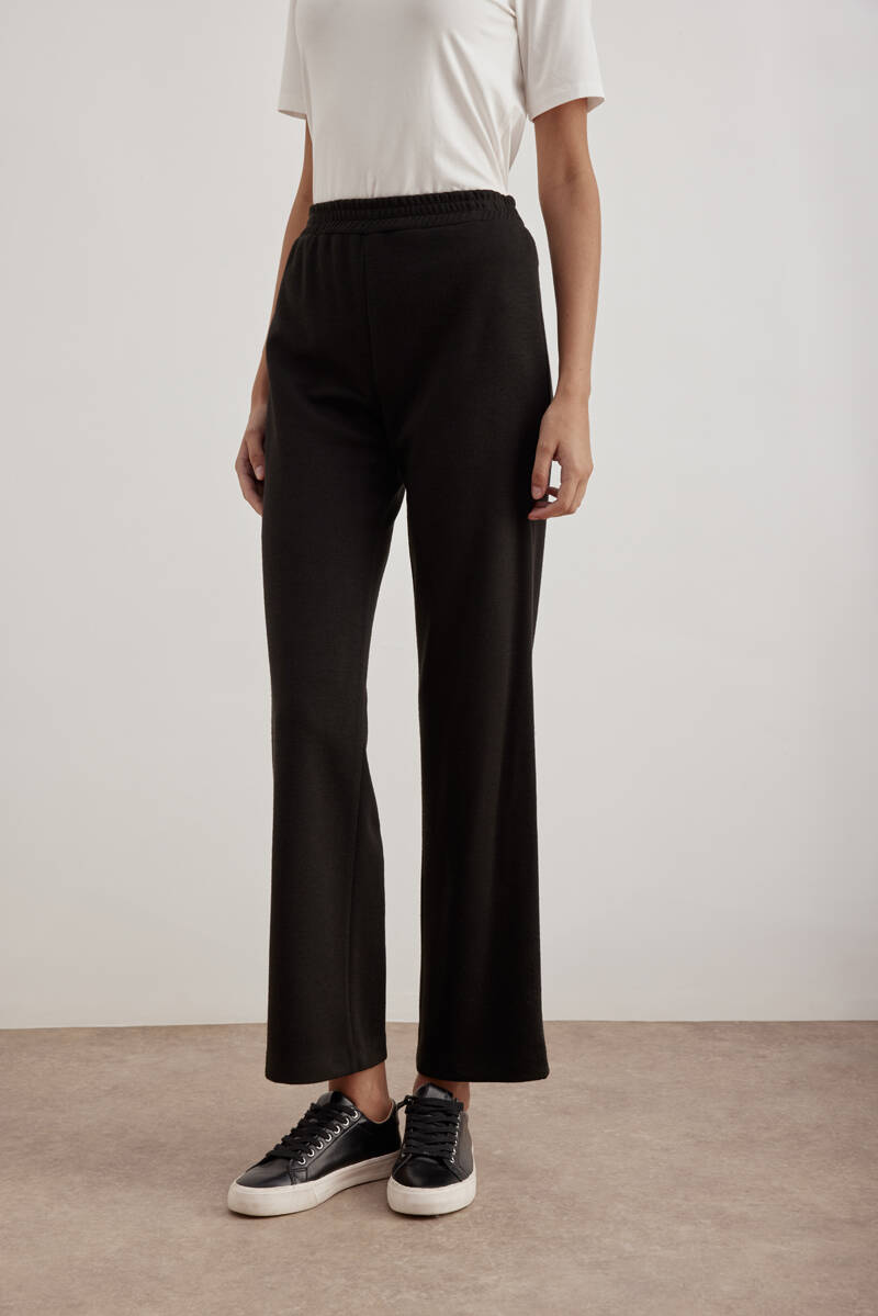 Siyah Beli Lastikli Krep Örme Pantolon