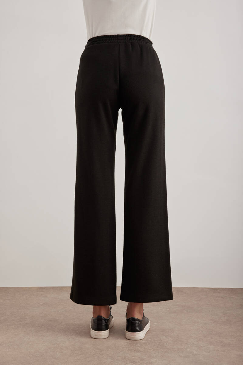 Siyah Beli ve Paçası Lastikli Balon Form Keten Pantolon