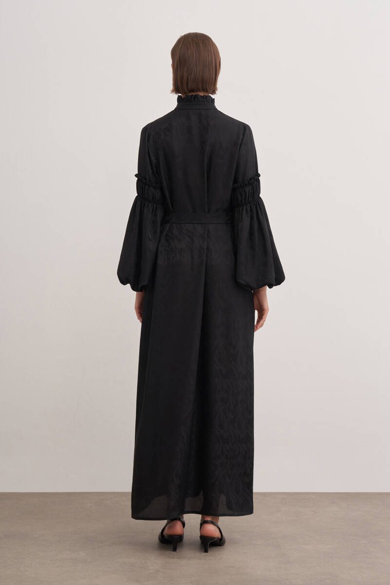 Siyah Doğal Dokulu Kumaş Gömlek Elbise