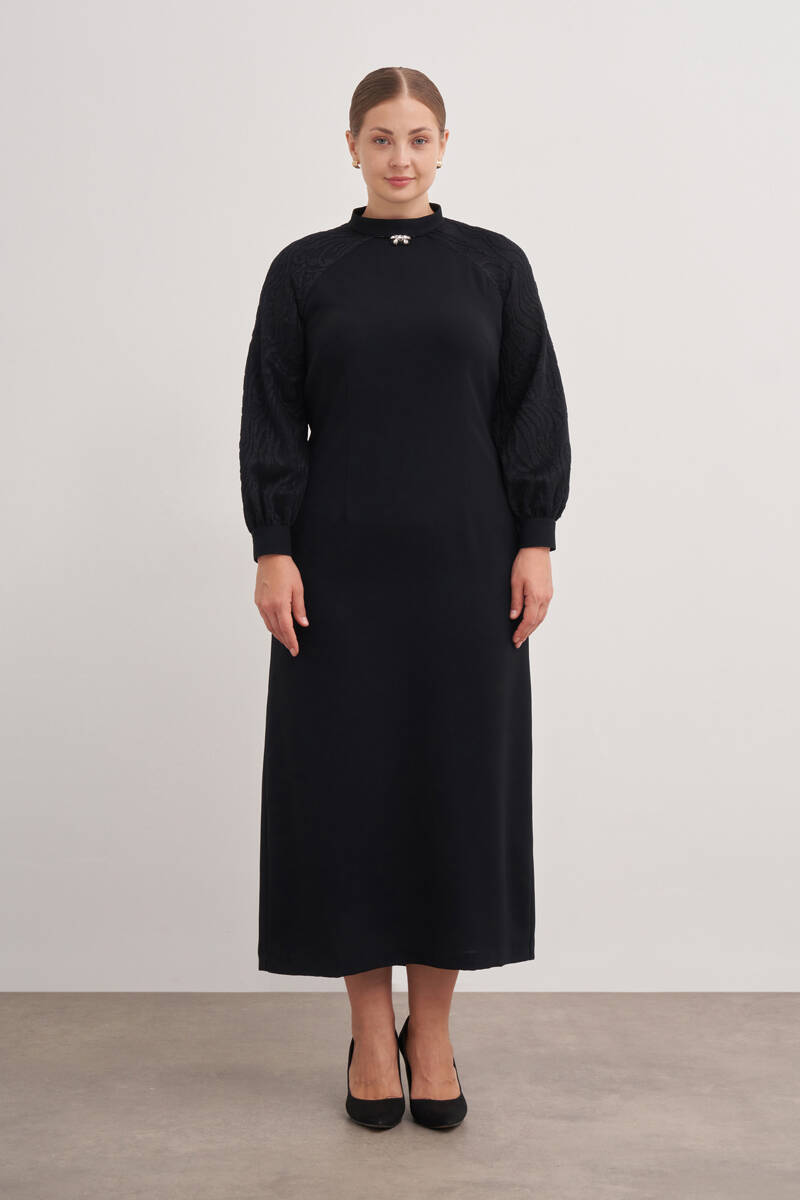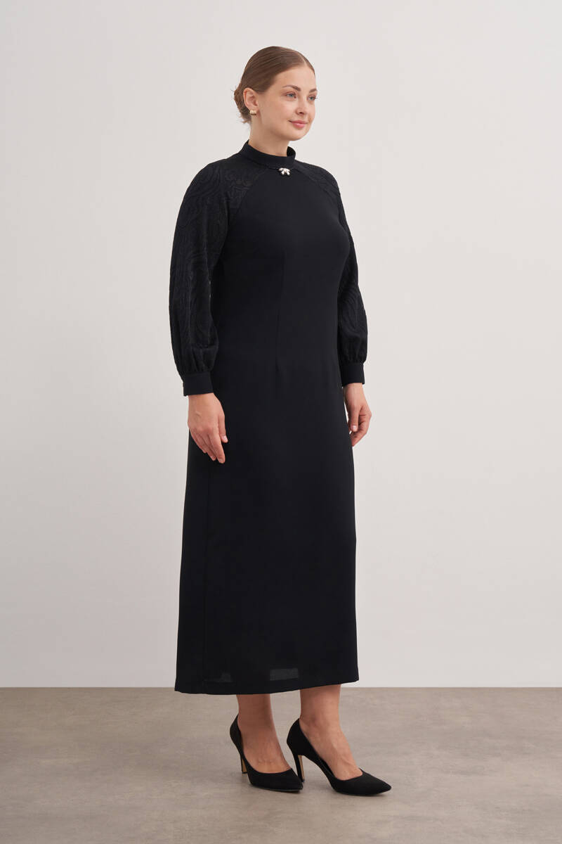 Lacivert Seyyar Çiçek Detaylı Varak Dokuma Elbise