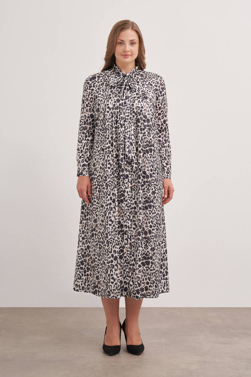 Ekru Desenli Elbise
