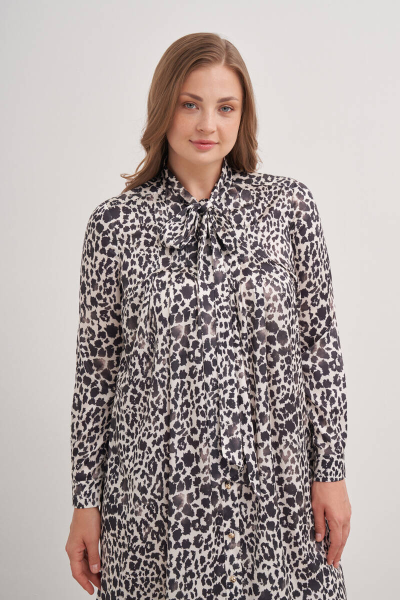 Mavi Leopar Desenli Viscon Gömlek Elbise