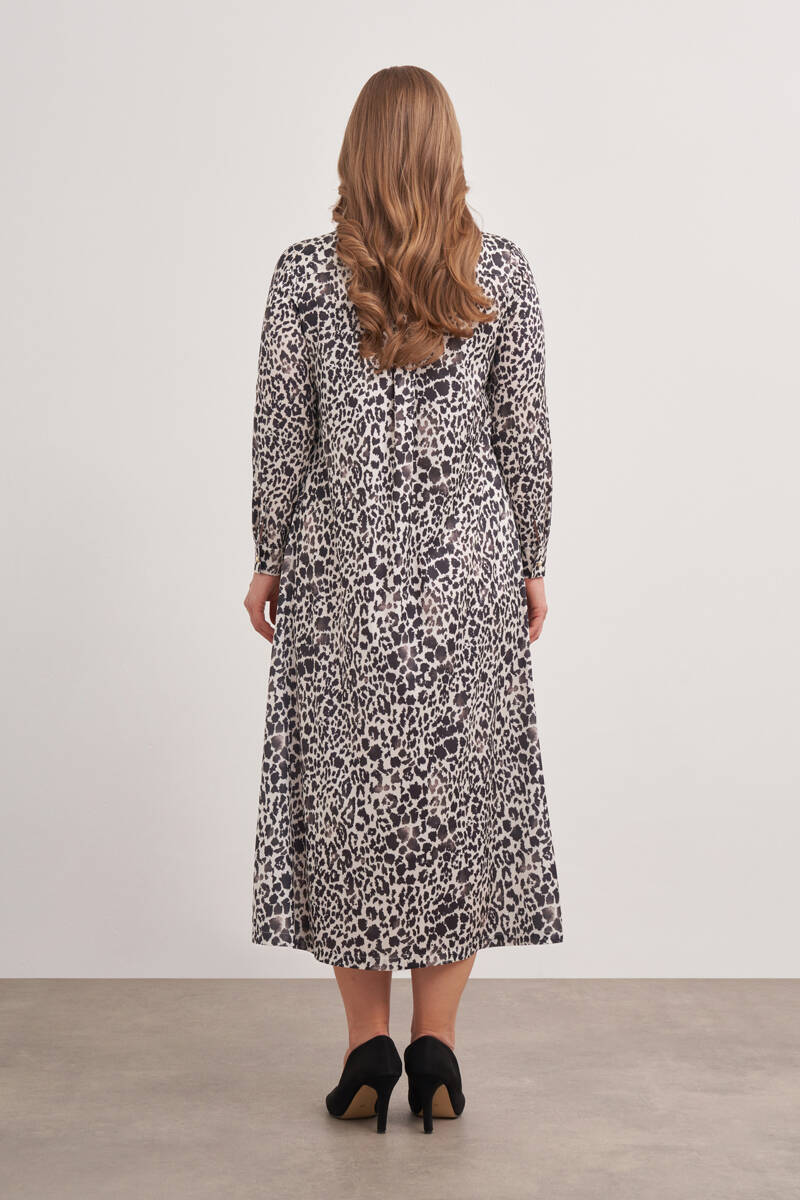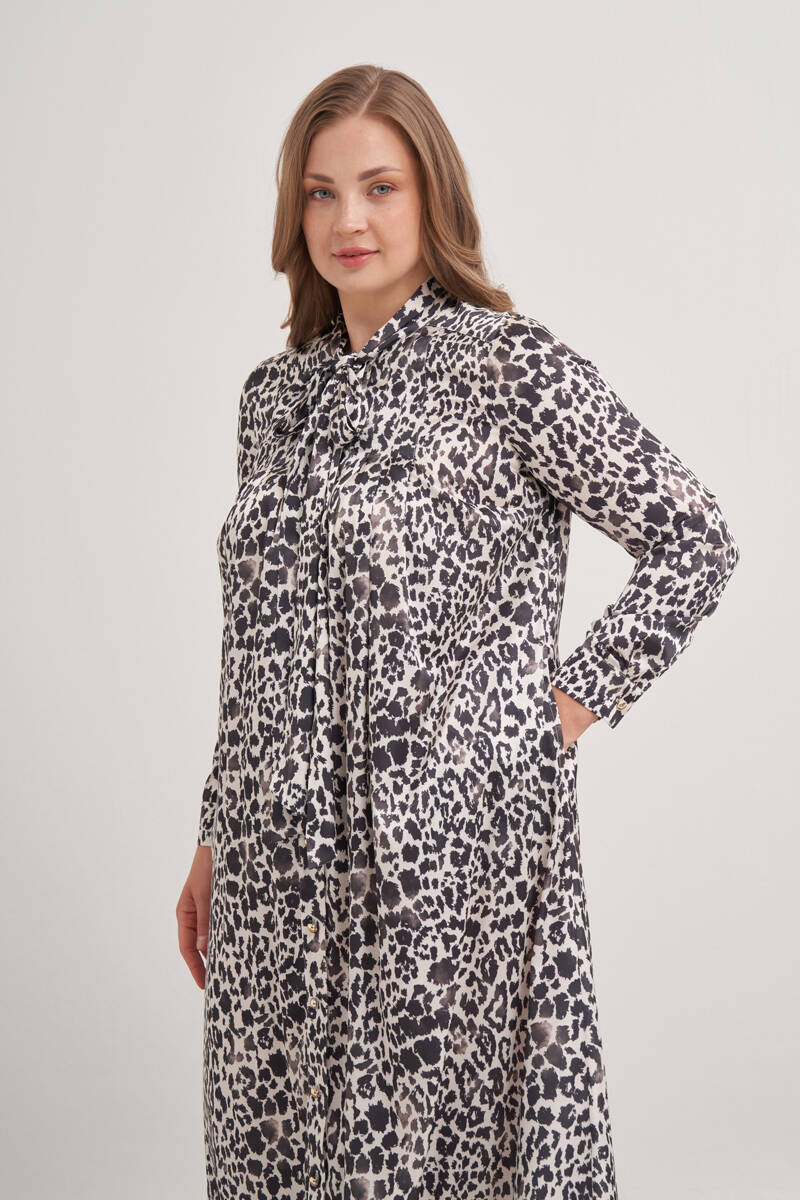Ekru Desenli Gömlek Elbise